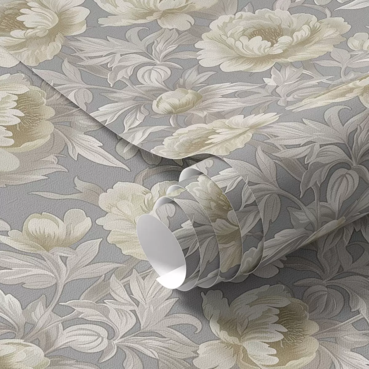 Tapet Bujori luxuriante și frunze pe un fundal gri Nr. a00403