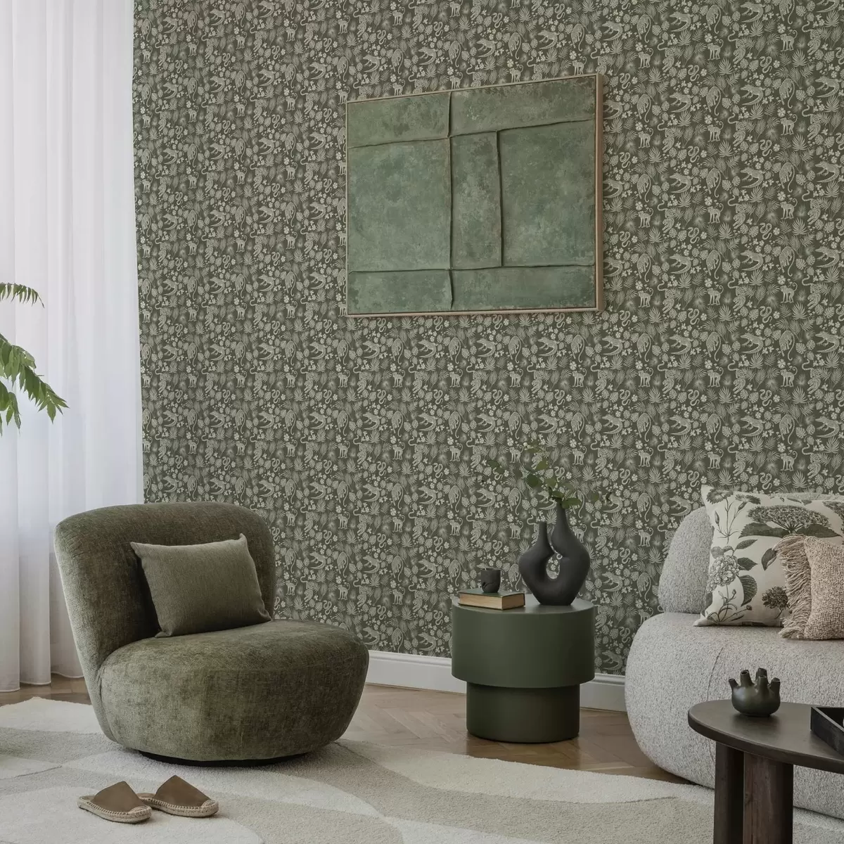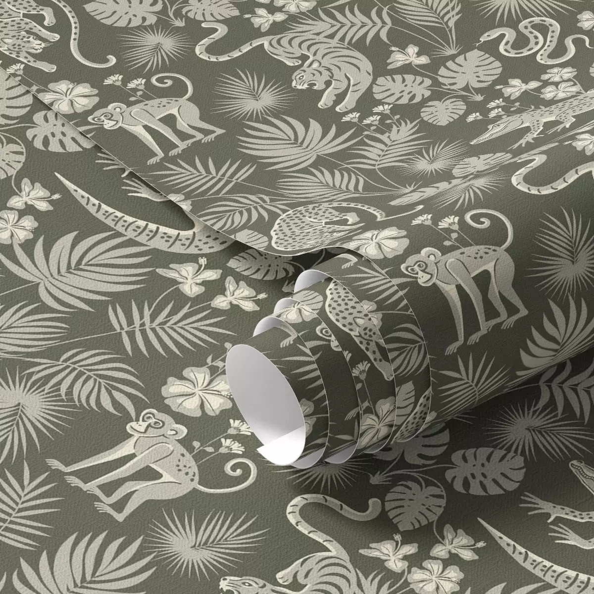 Tapet Siluete de animale sălbatice printre frunze tropicale Nr. a00404