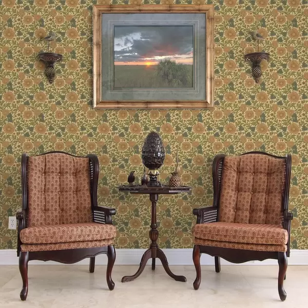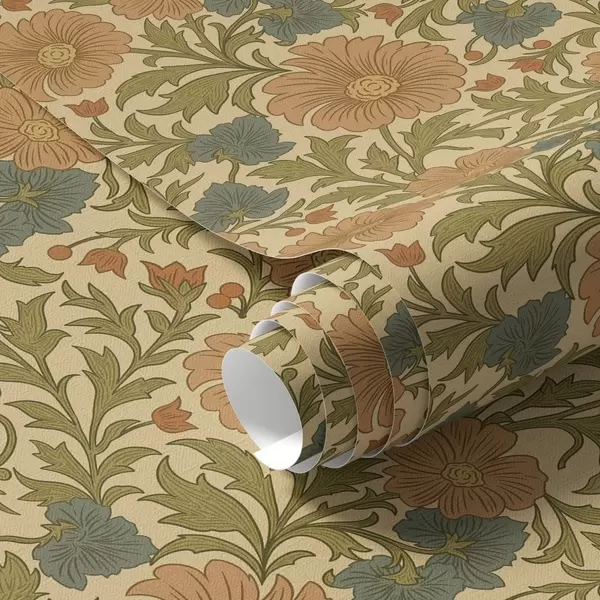 Tapet Flori portocalii cu frunze în stil Art Nouveau Nr. a00409