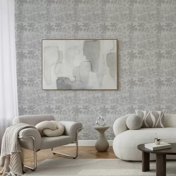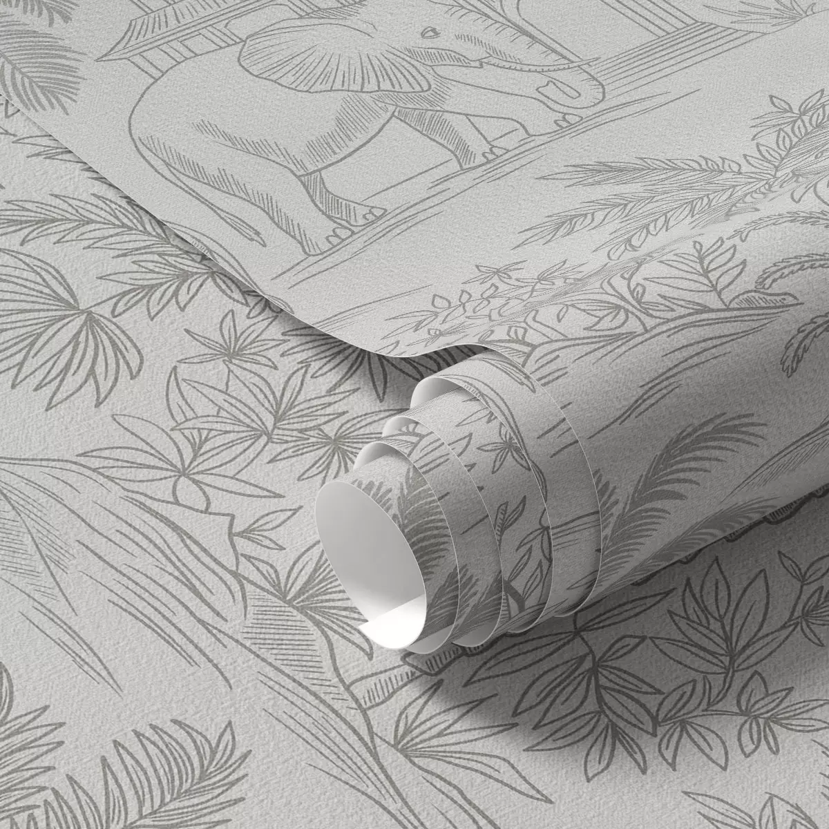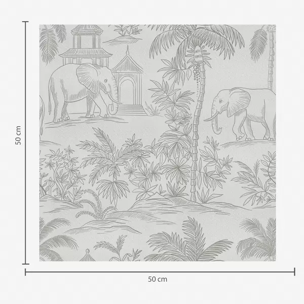 Wallpaper Elefanți monocromi și junglă în stil grafic a00410