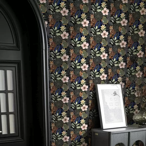 Tapet Tigri printre flori și frunze tropicale strălucitoare Nr. a00426
