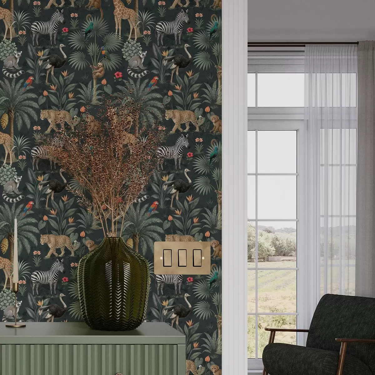 Tapet Animale tropicale realiste printre plante Nr. a00427
