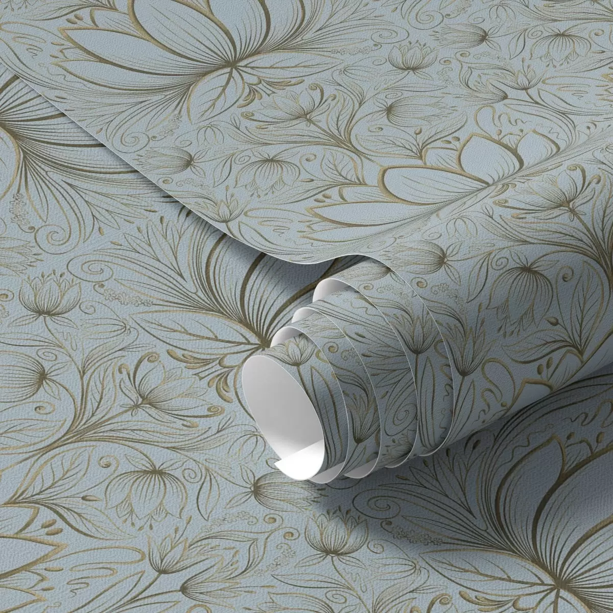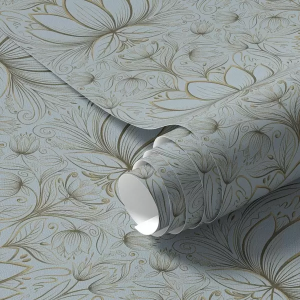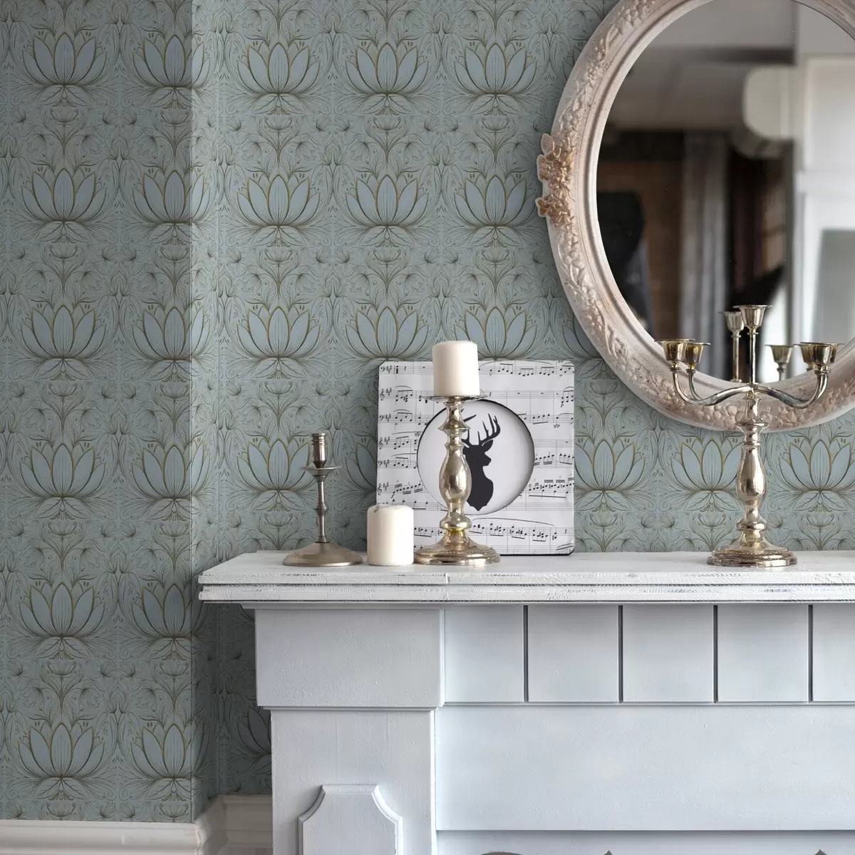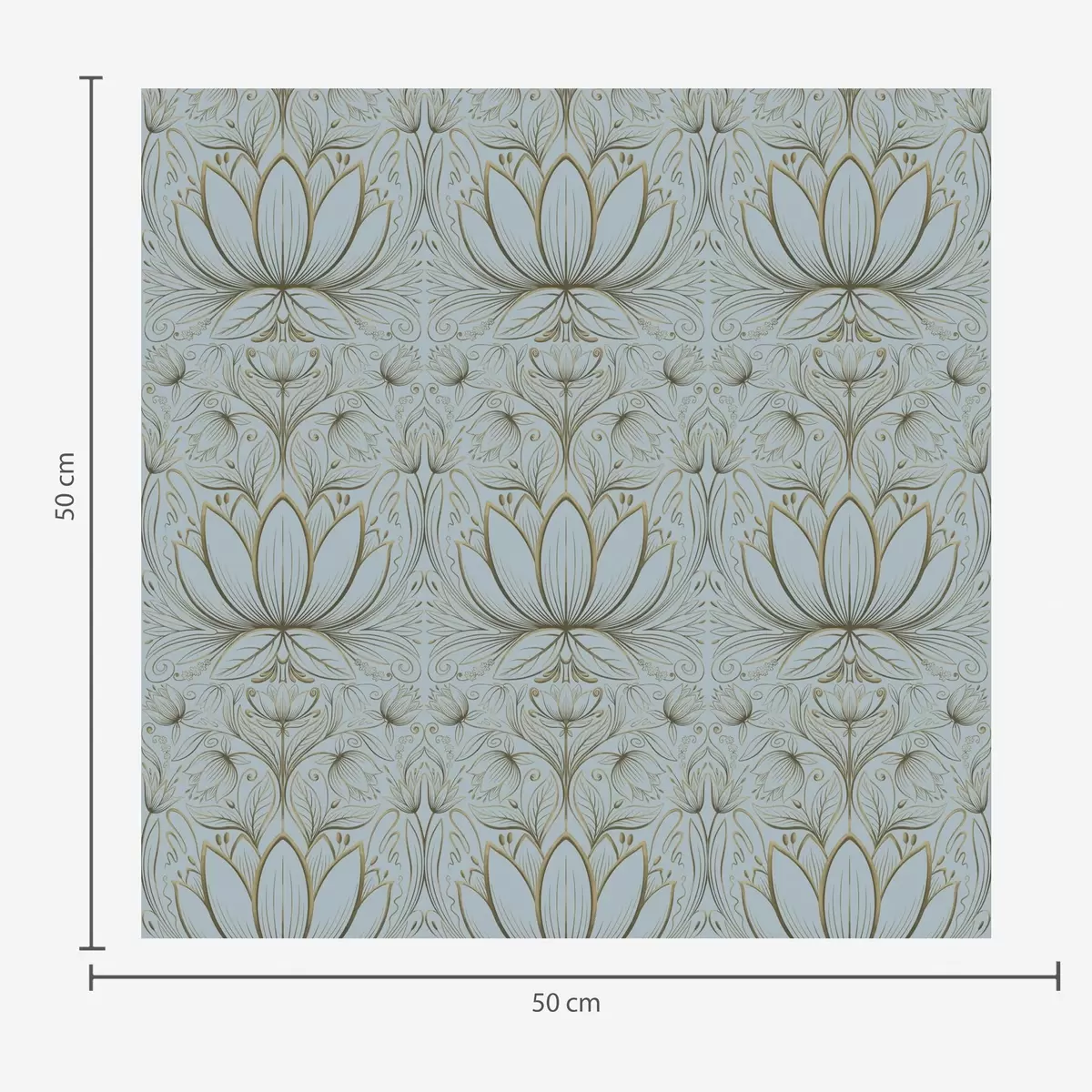 Tapet Ornament Lotus în paleta de culori turcoaz și galben Nr. a00439