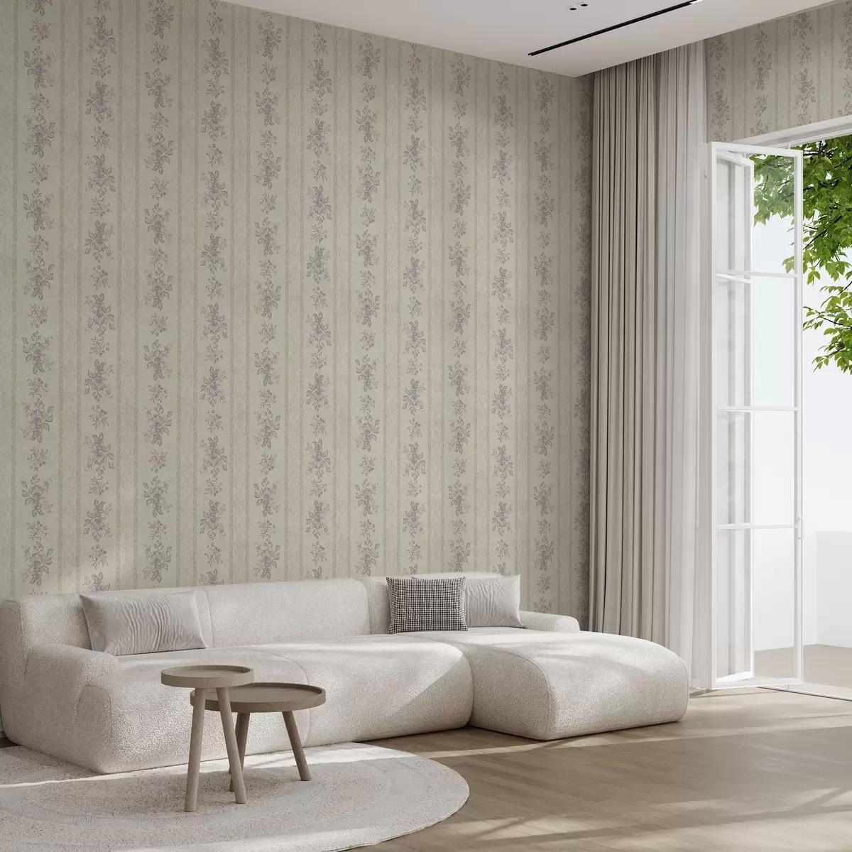 Tapet Flori de epocă pe un fundal dungat cu ornament Nr. a00440