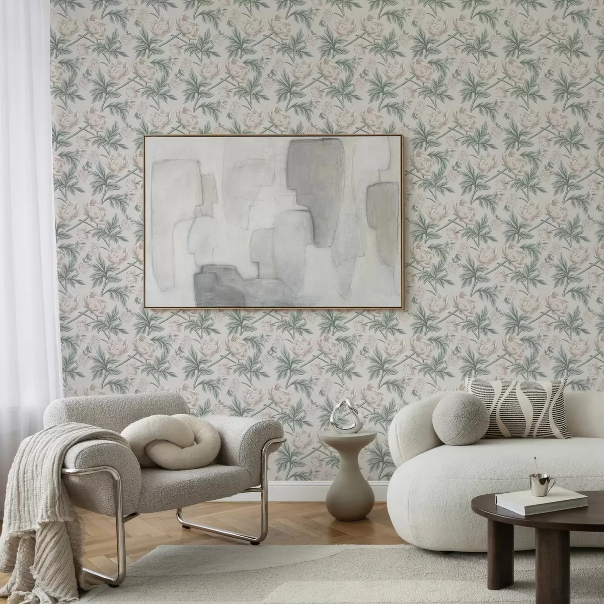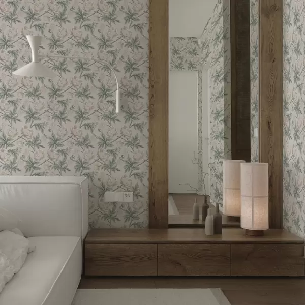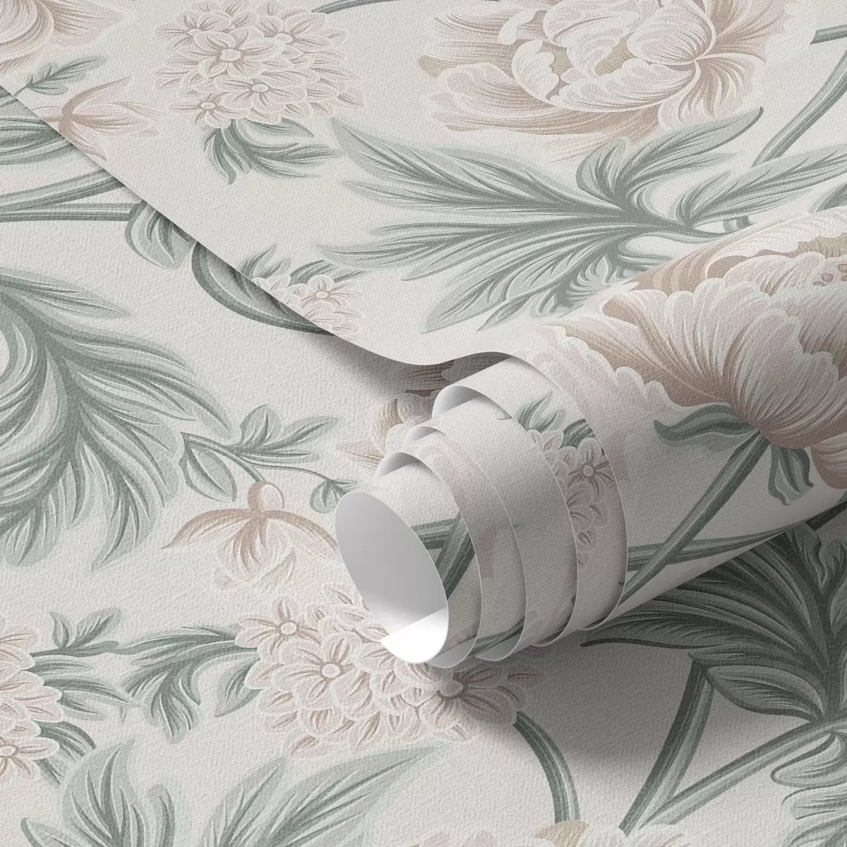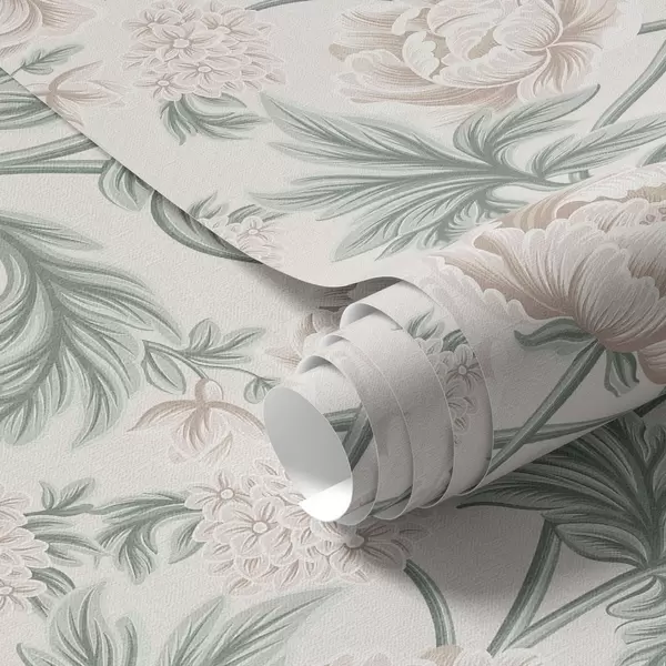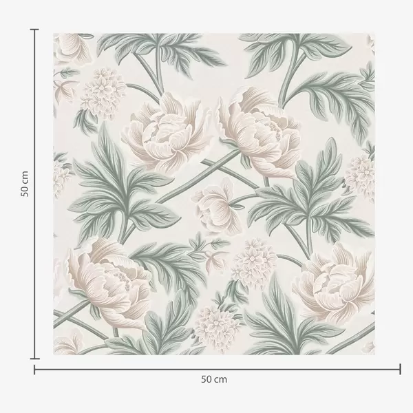Tapet Bujori luxuriante în bej deschis și verde bej și verde Nr. a00445
