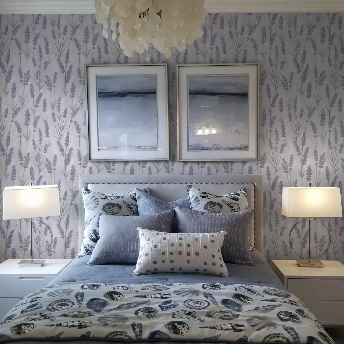 Tapet Ramuri de levănțică într-o paletă de acuarelă mov pal Nr. a00447