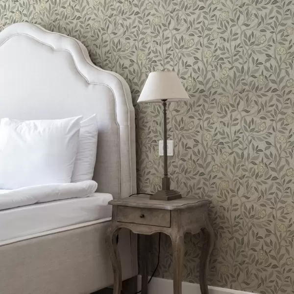 Wallpaper Trandafiri crem și frunze de măslin pe fundal roz prăfuit a00455