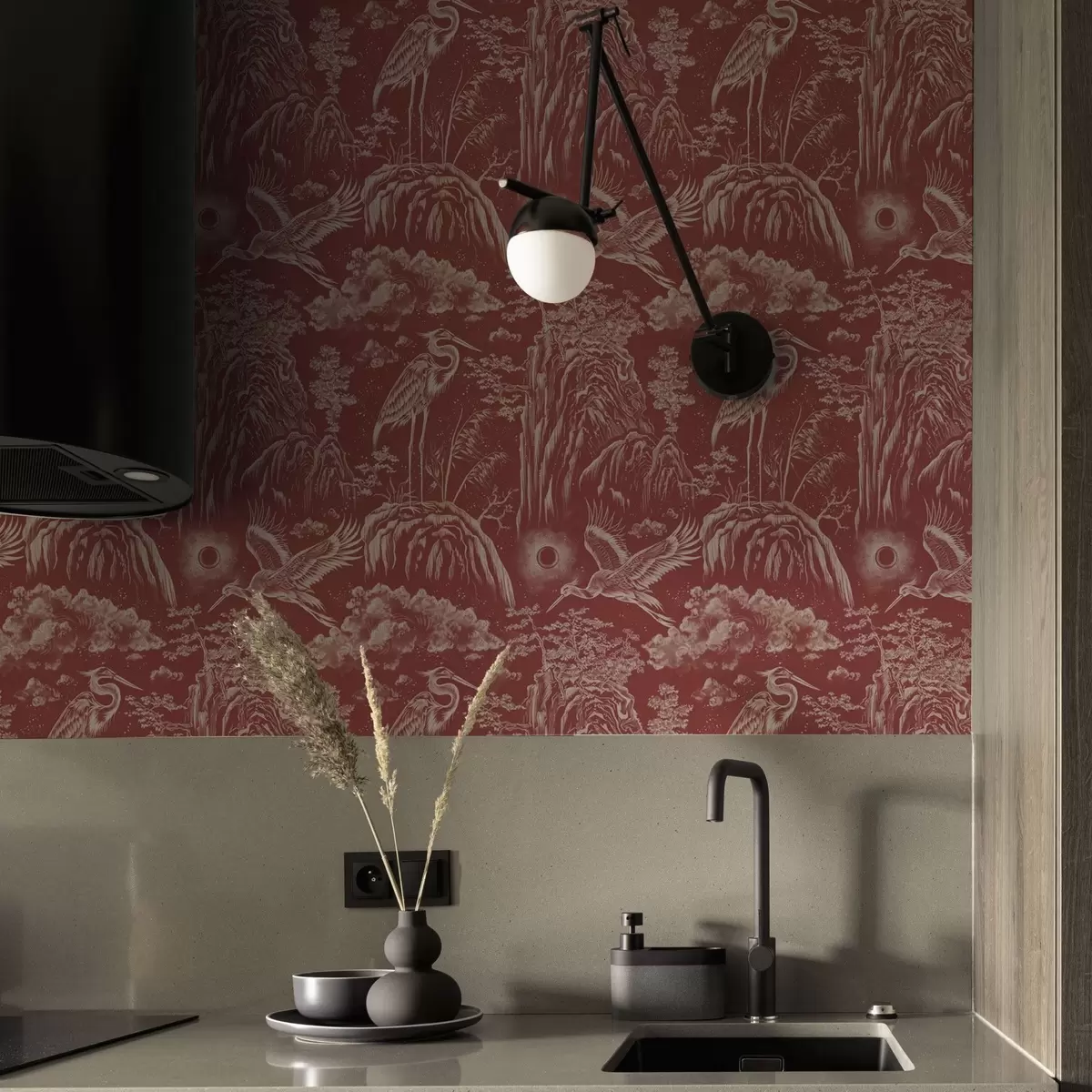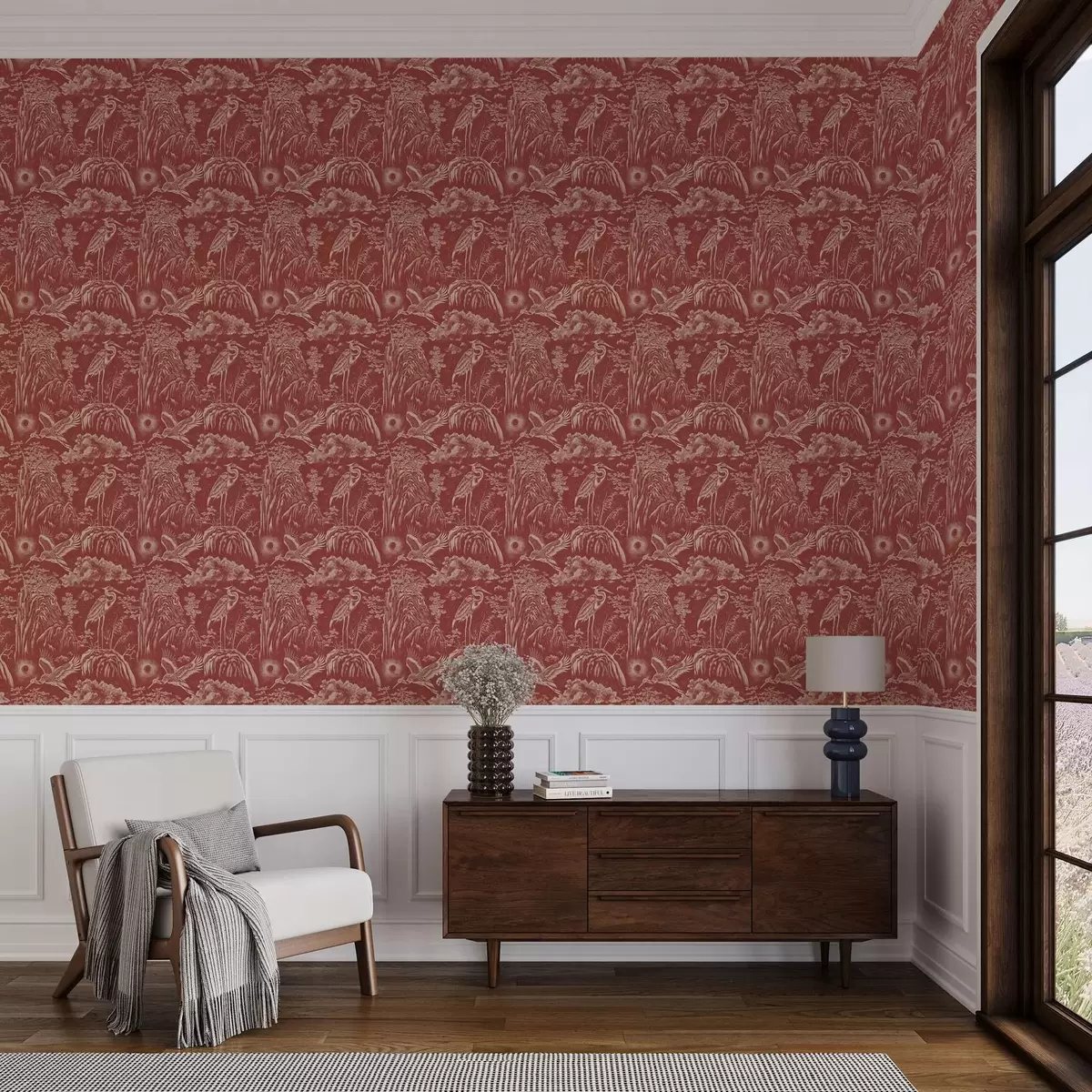 Tapet Heroni, munți și nori în stilul gravurii japoneze Nr. a00458