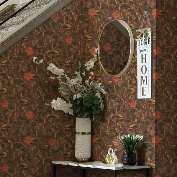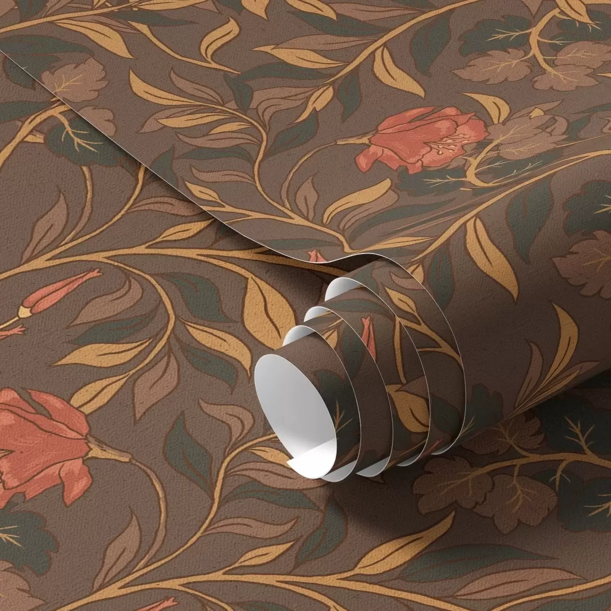 Tapet Ramuri de teracotă înfloritoare pe un fundal maro Nr. a00460