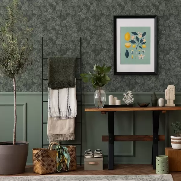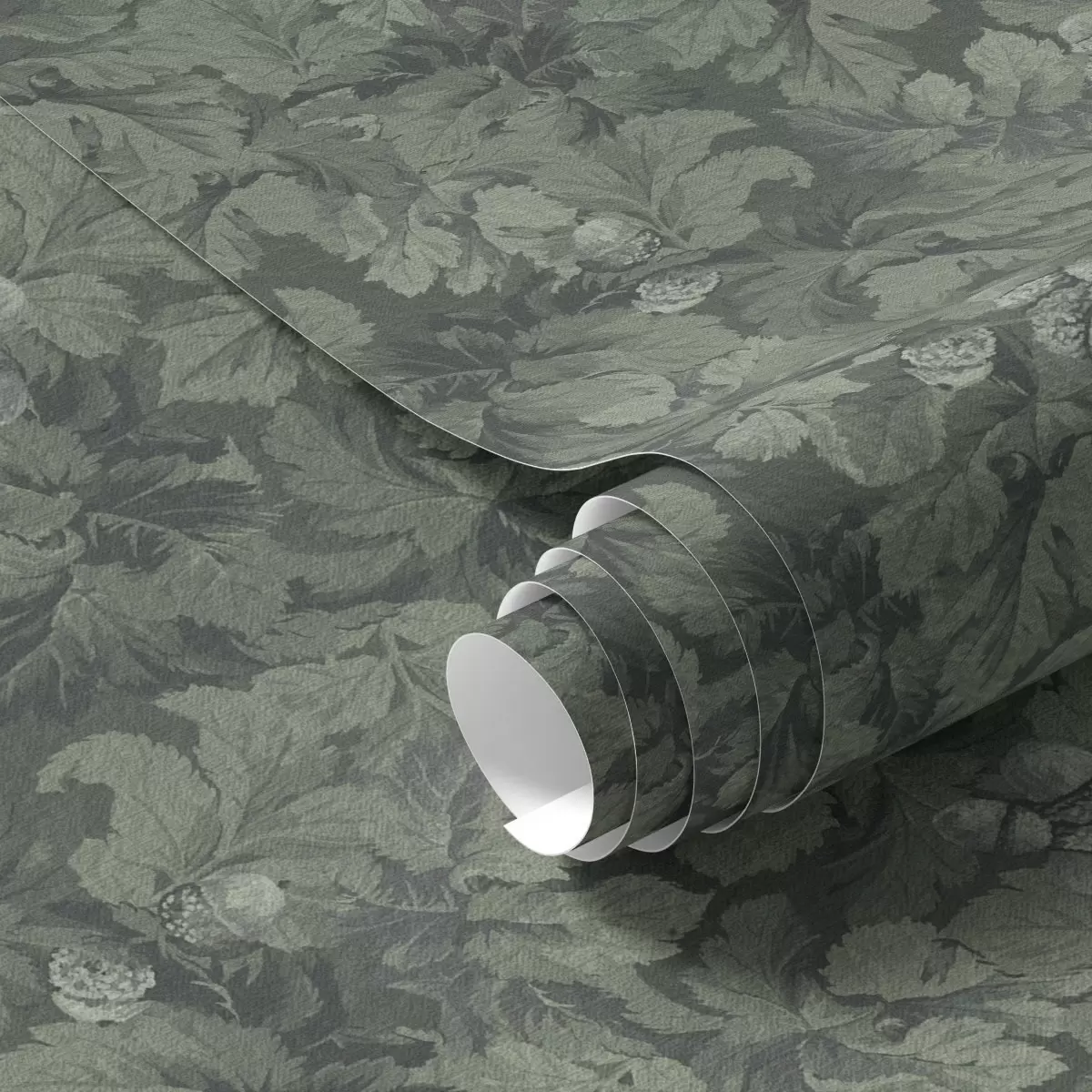 Tapet Textura întunecată a frunzelor cu ghinde în verde intens Nr. a00461