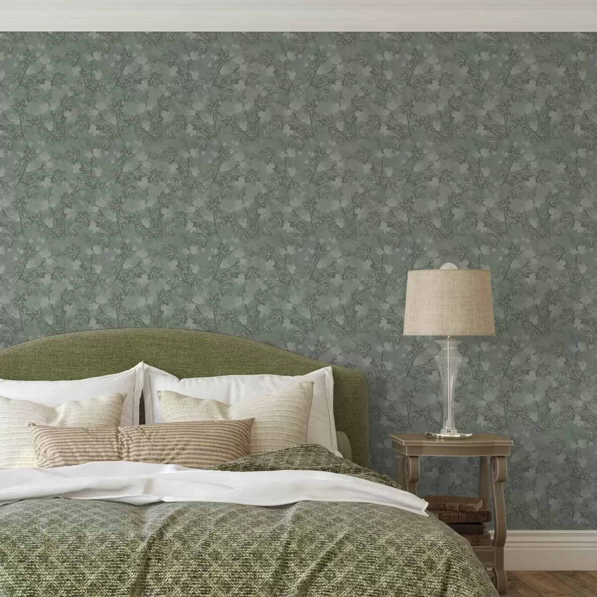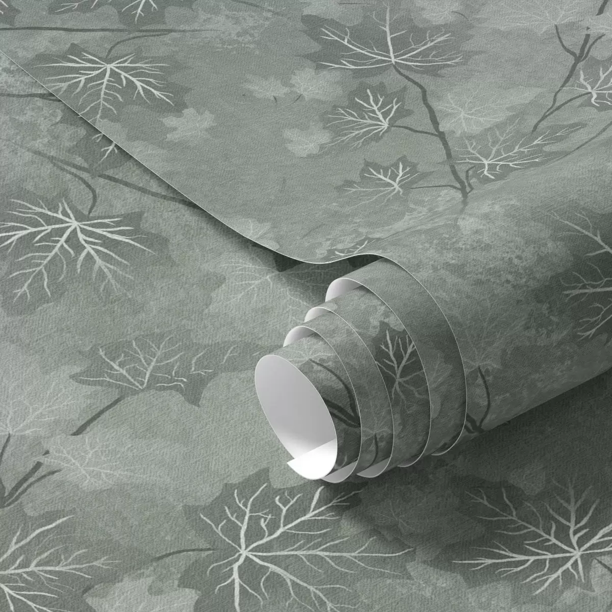 Tapet Frunze de arțar mate în tonuri verzi moi Nr. a00464