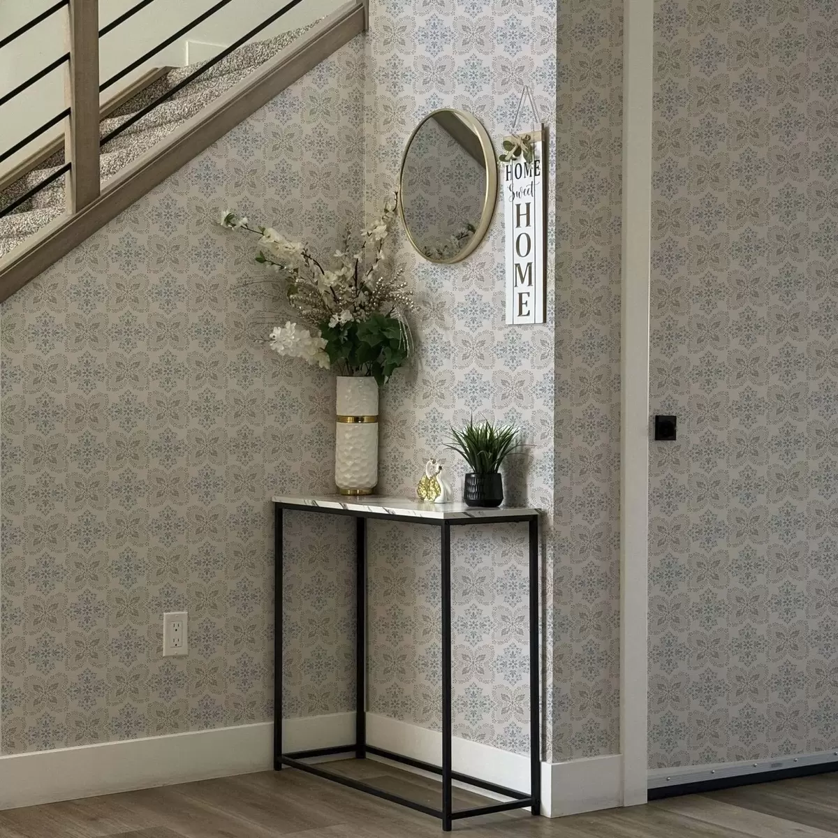 Tapet Modele simetrice de frunze gri-albastru Nr. a00467