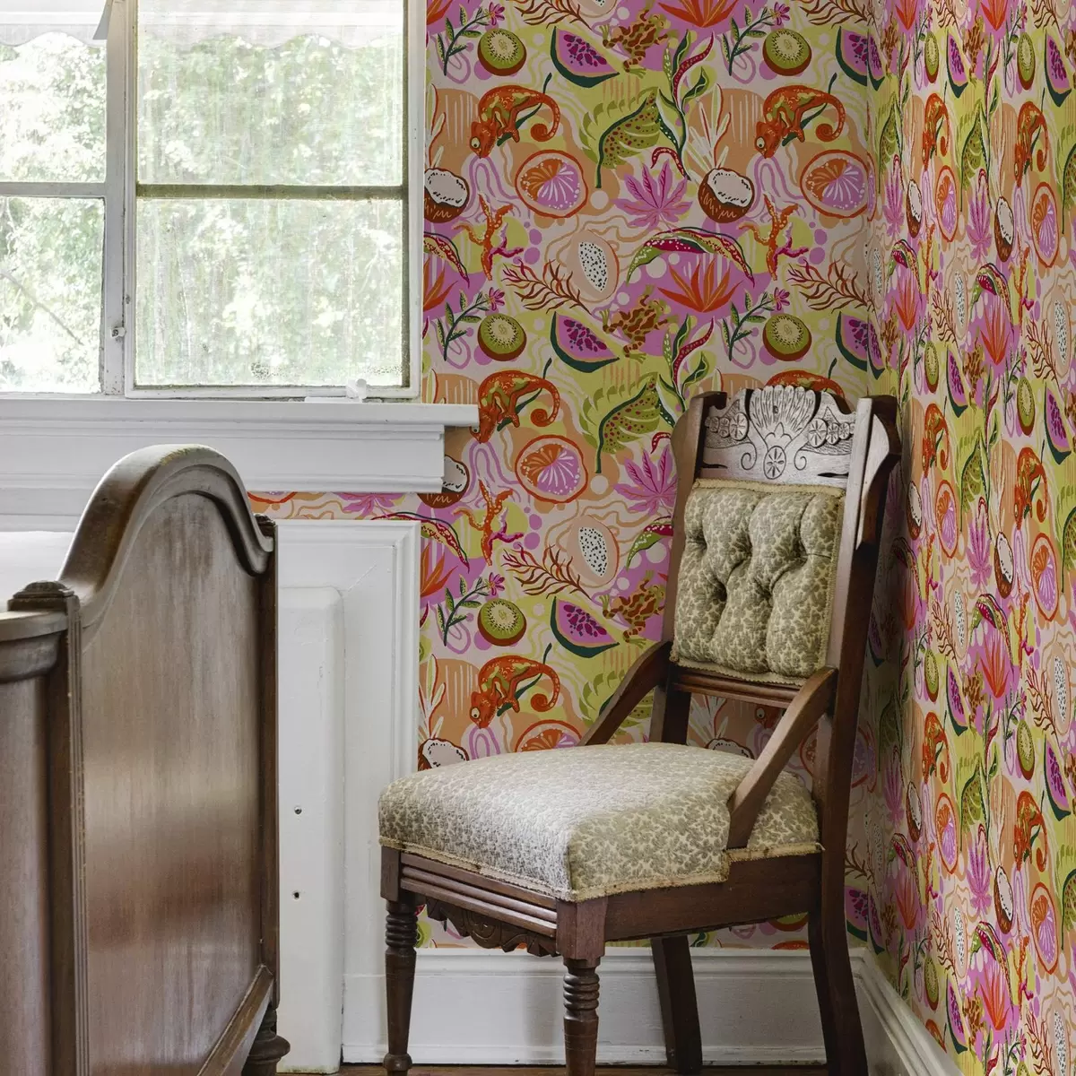 Tapet Fructe exotice, frunze și cameleoni în stil tropical Nr. a00469