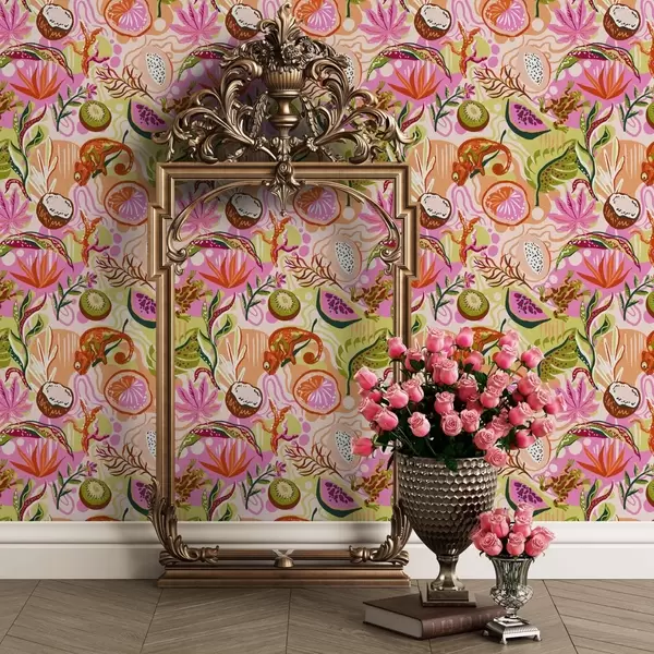 Tapet Fructe exotice, frunze și cameleoni în stil tropical Nr. a00469