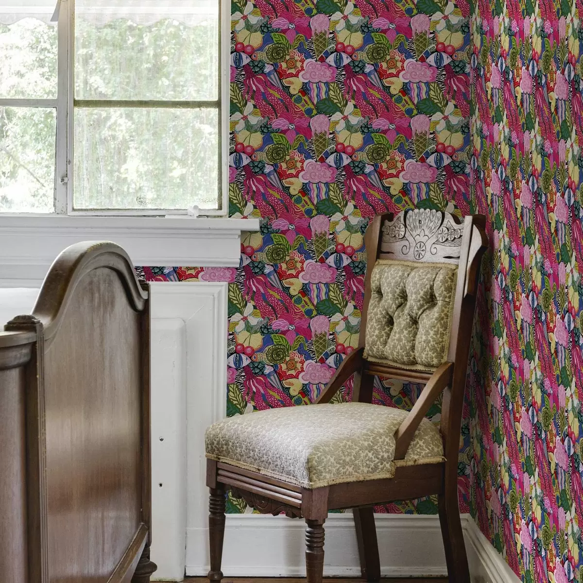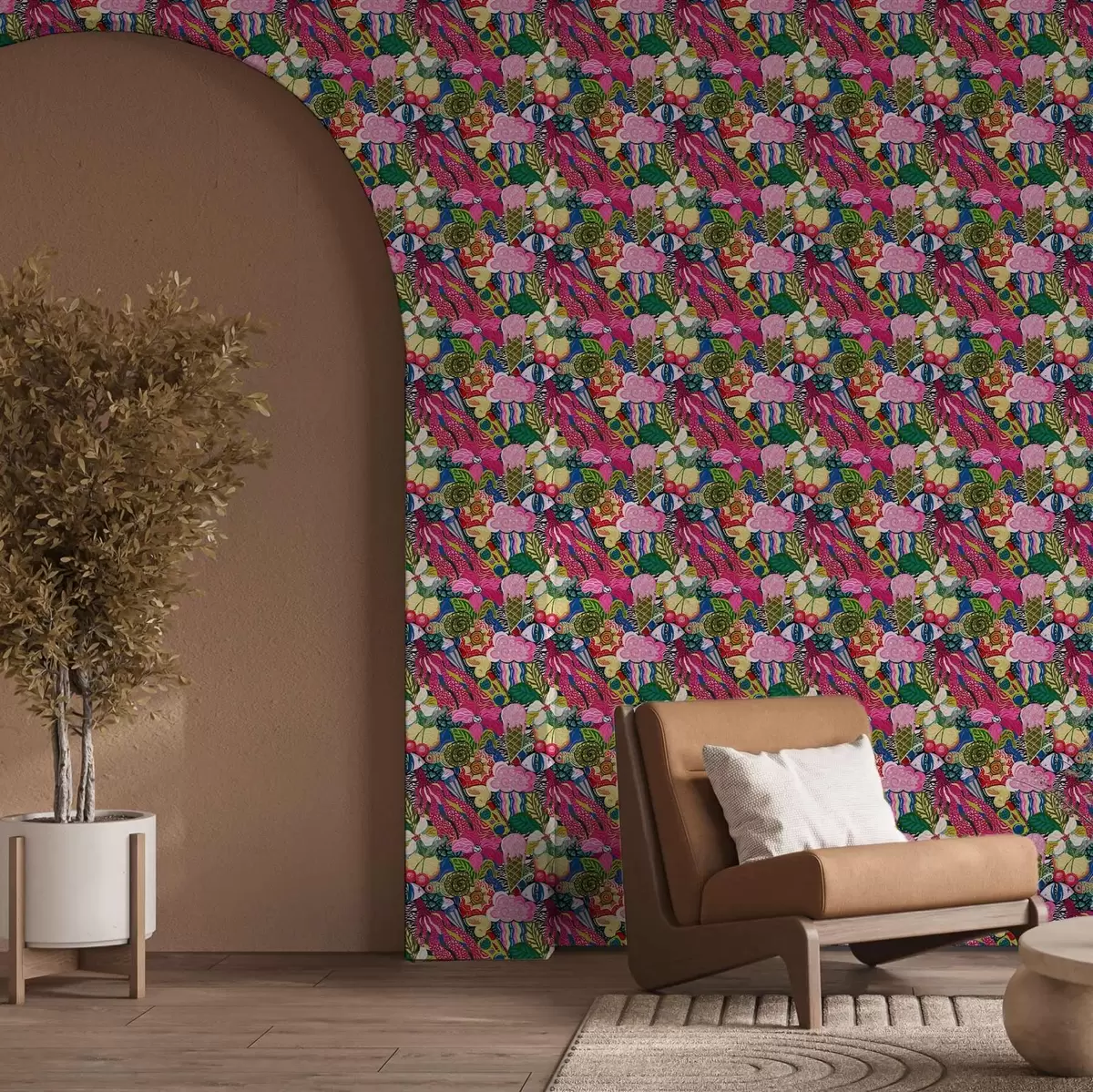 Tapet Pop-art abstract cu flori, fructe de pădure și modele Nr. a00471