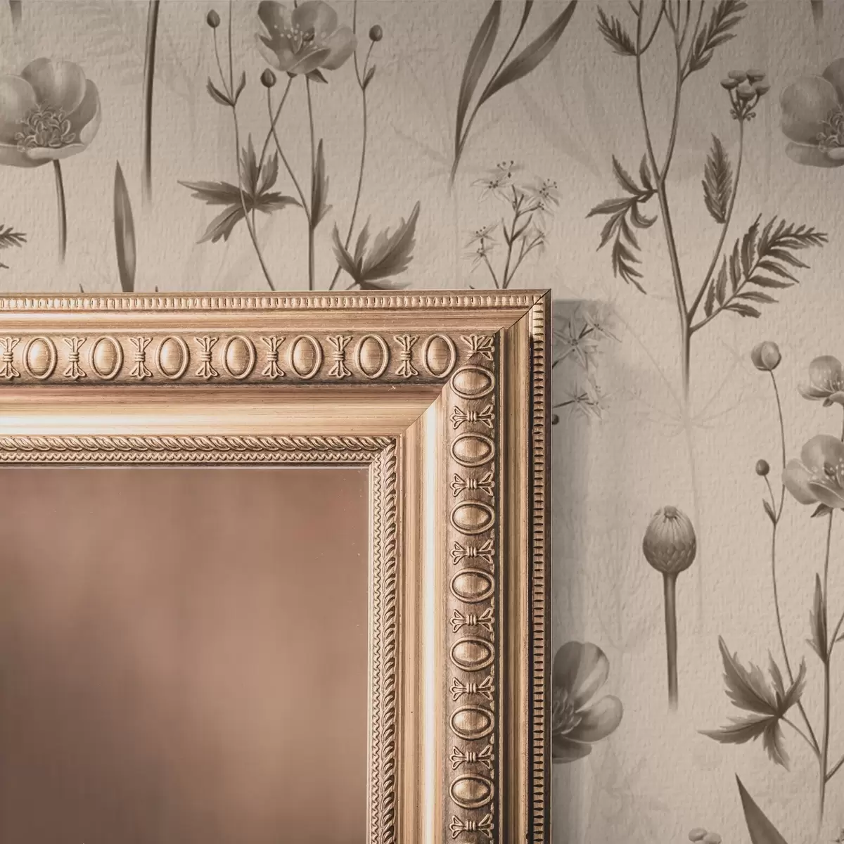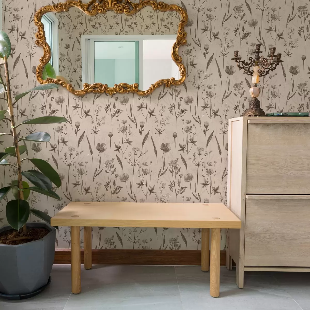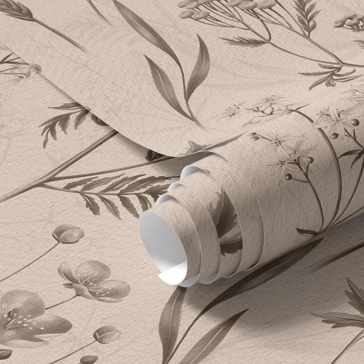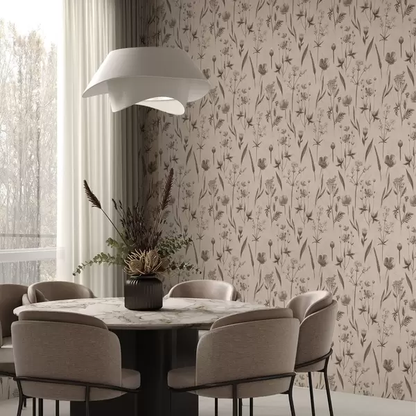 Tapet Flori galbene și verdeață în tonuri gri-maro Nr. a00472v1
