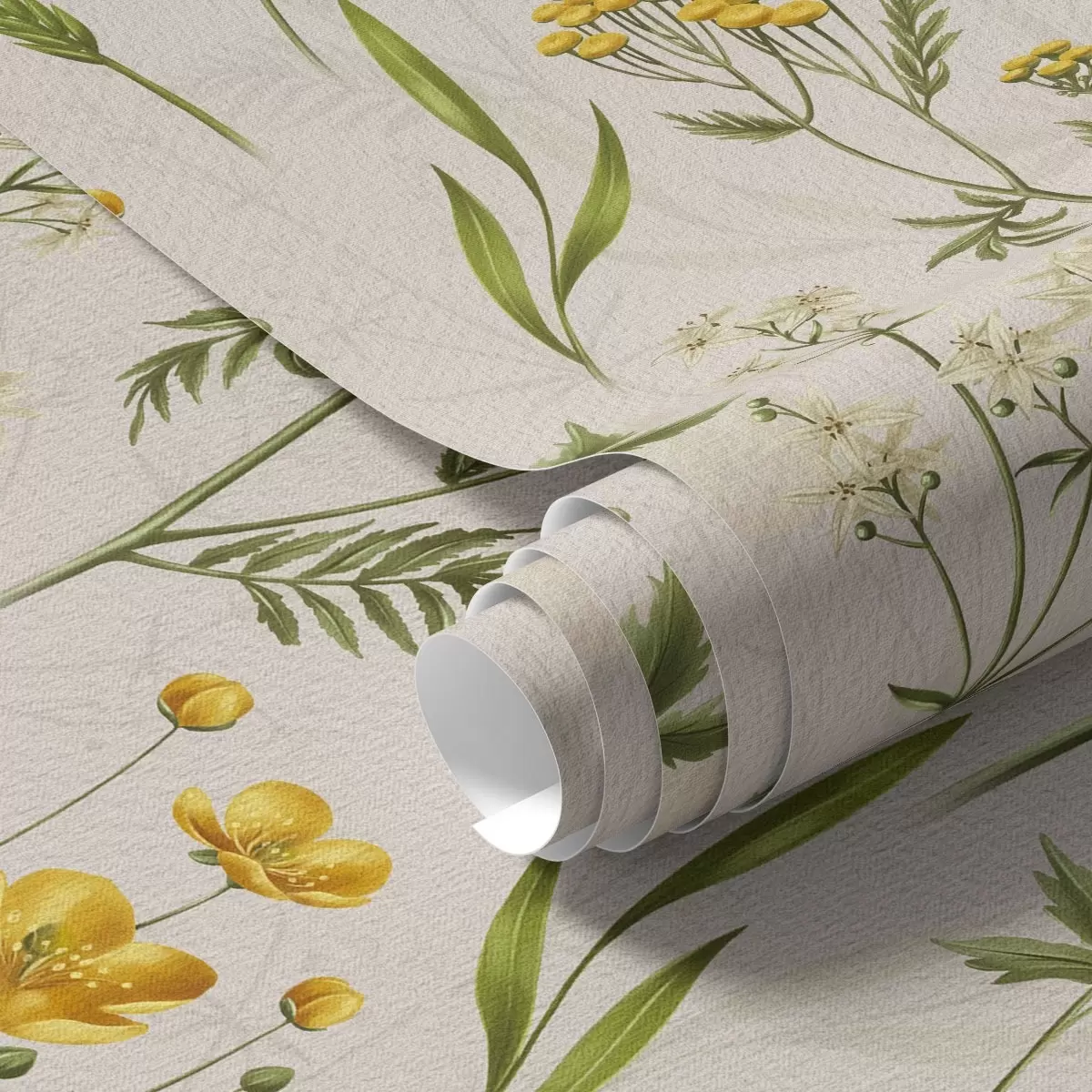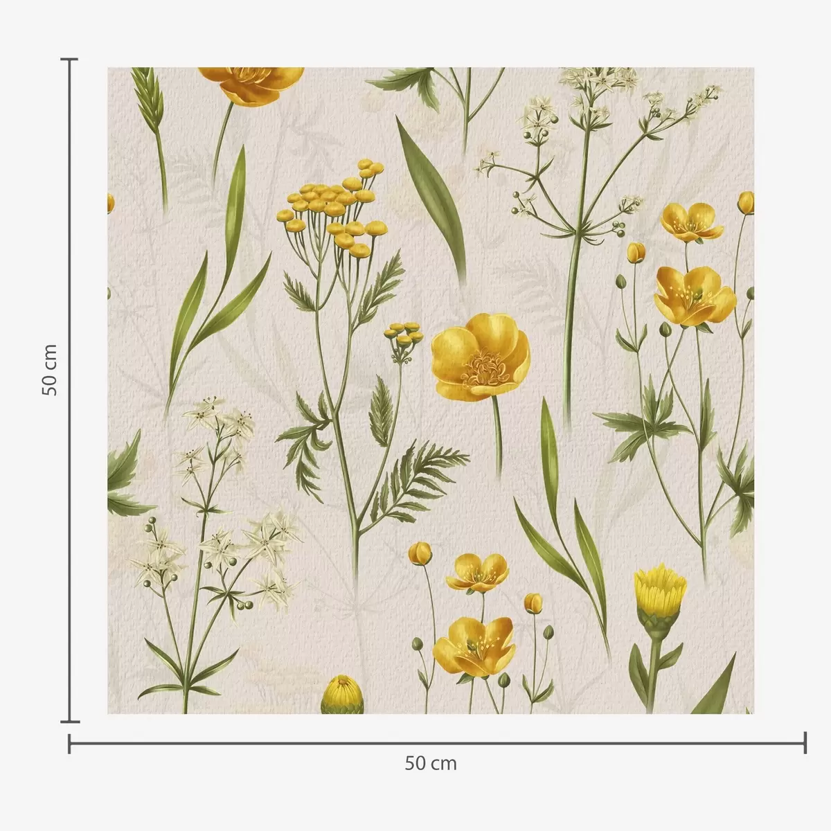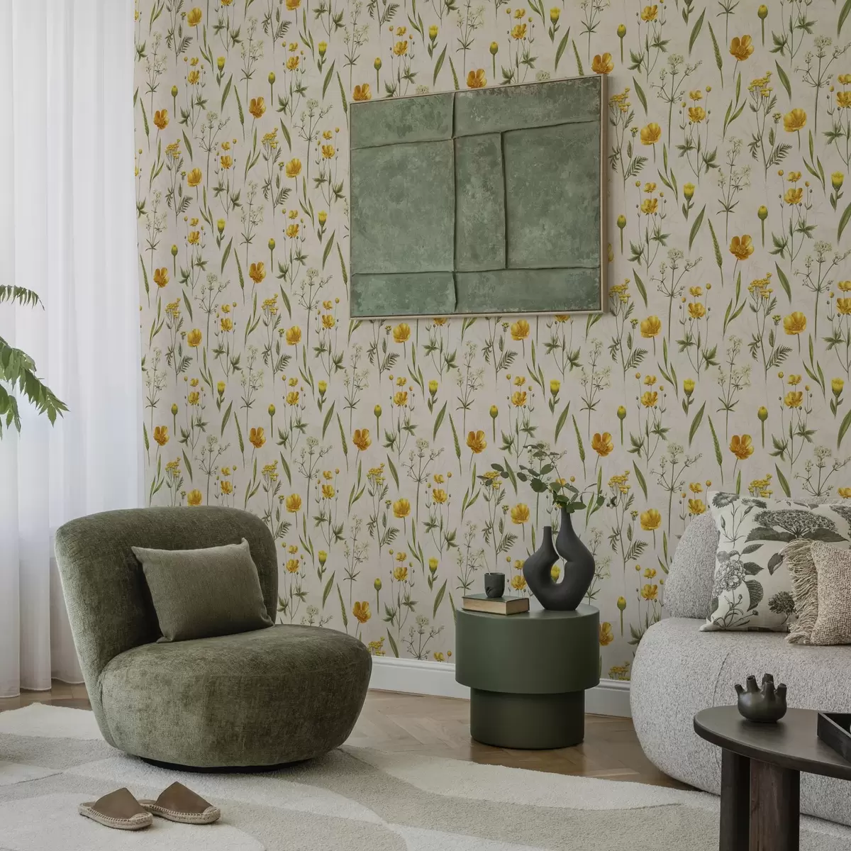 Tapet Flori galbene și verdeață pe un fundal bej Nr. a00472v2