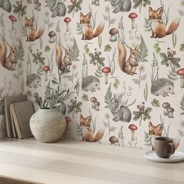 Tapet Animale de pădure, ciuperci și plante în stil de basm Nr. a00477