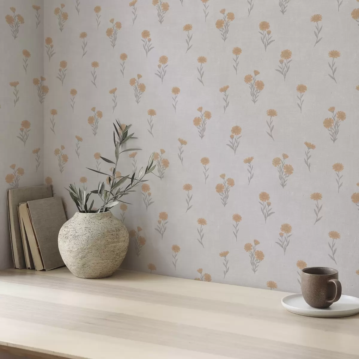 Tapet Flori mici portocalii pe un fundal gri deschis Nr. a00486