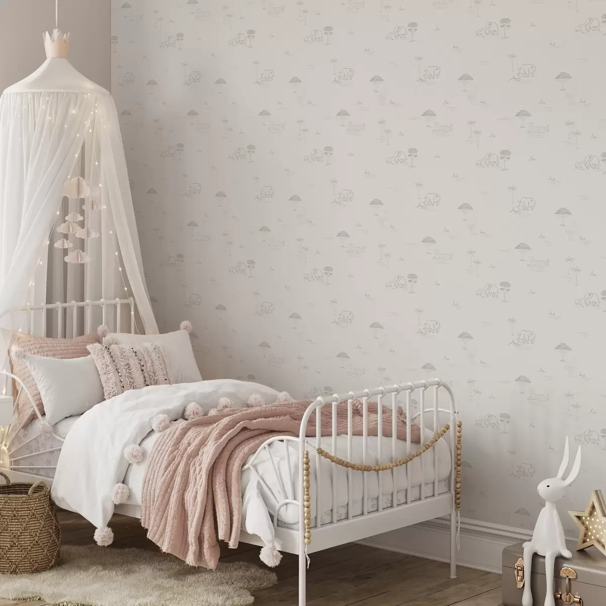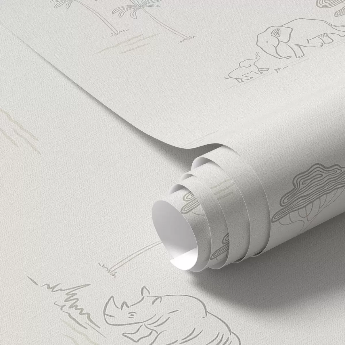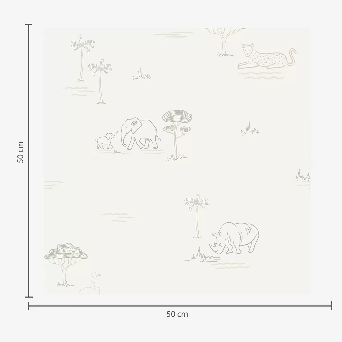 Tapet Safari minimalist: elefanți, rinoceri, leoparzi și palmieri Nr. a00492