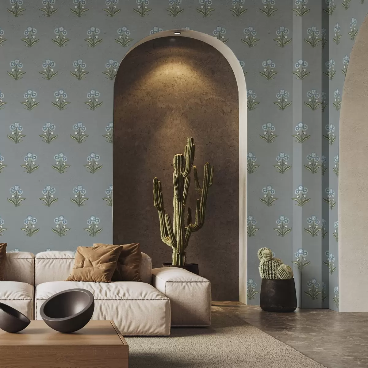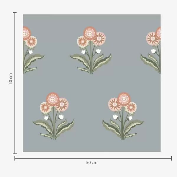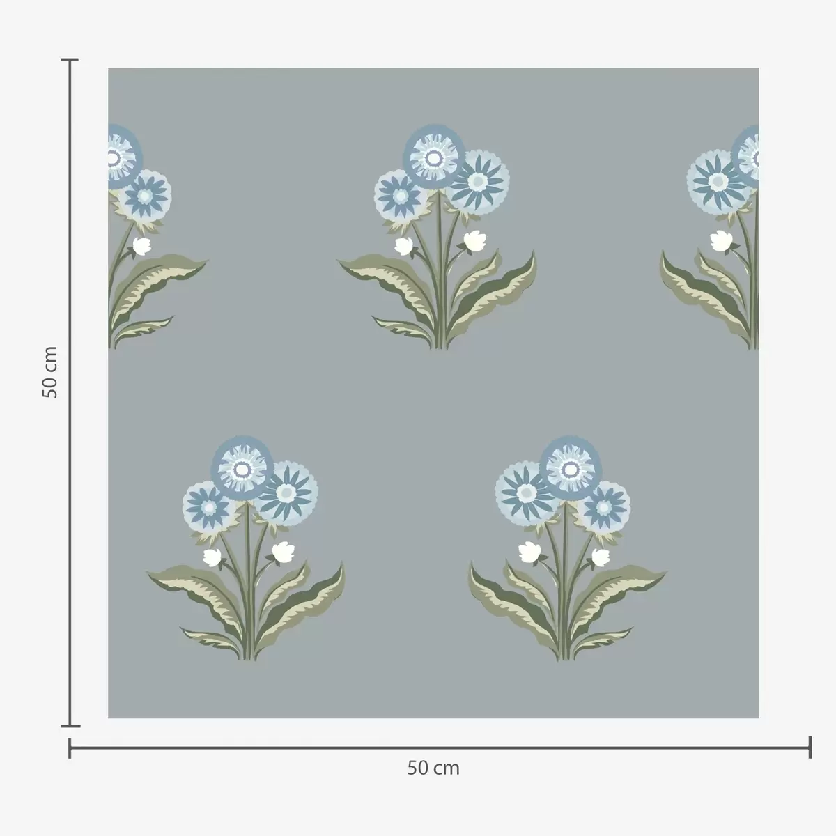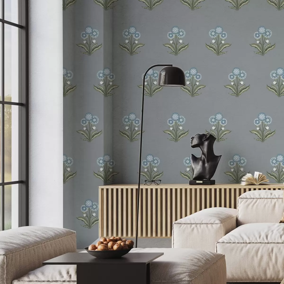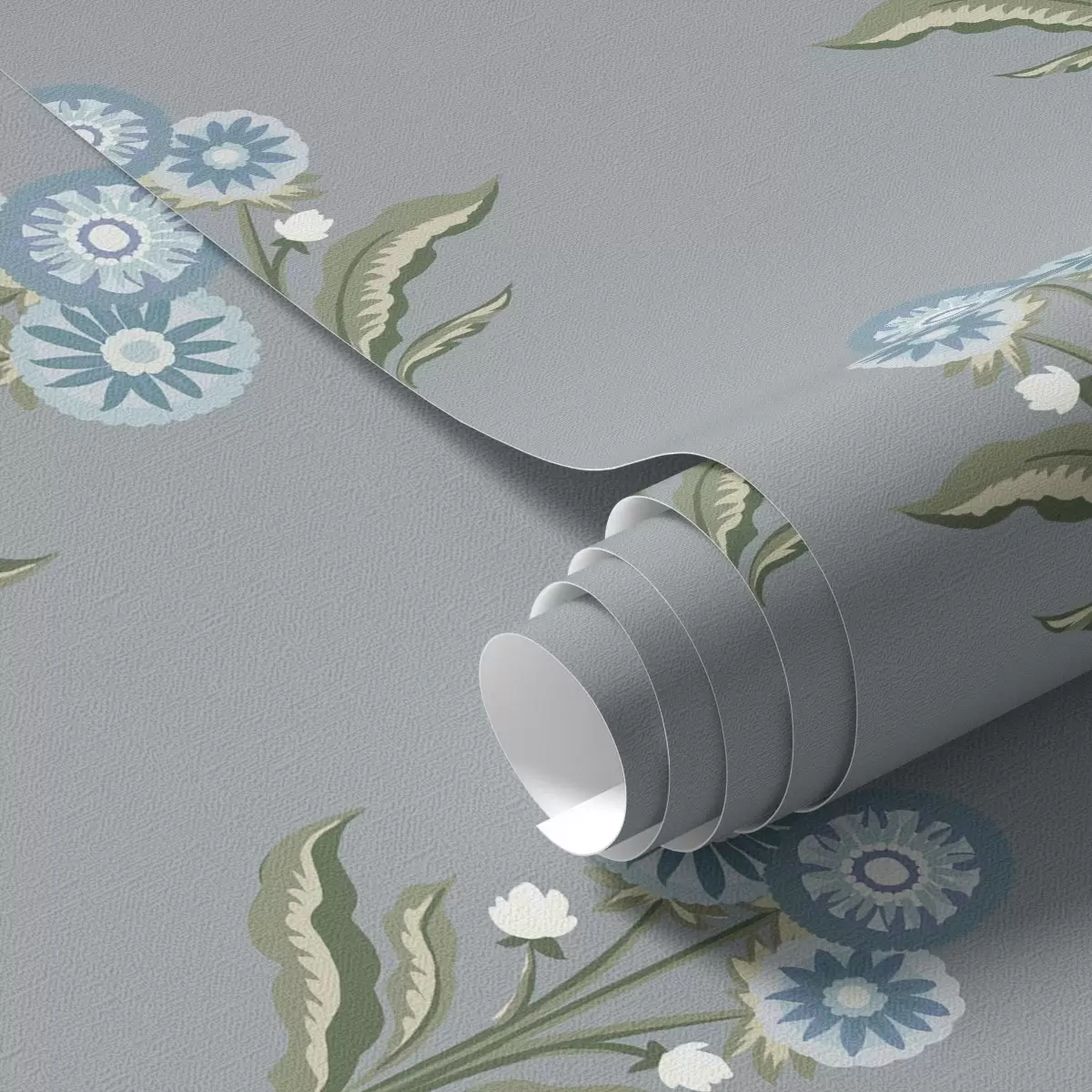 Wallpaper Flori stilizate pe un fundal gri-albastru, paletă rece a00494v1
