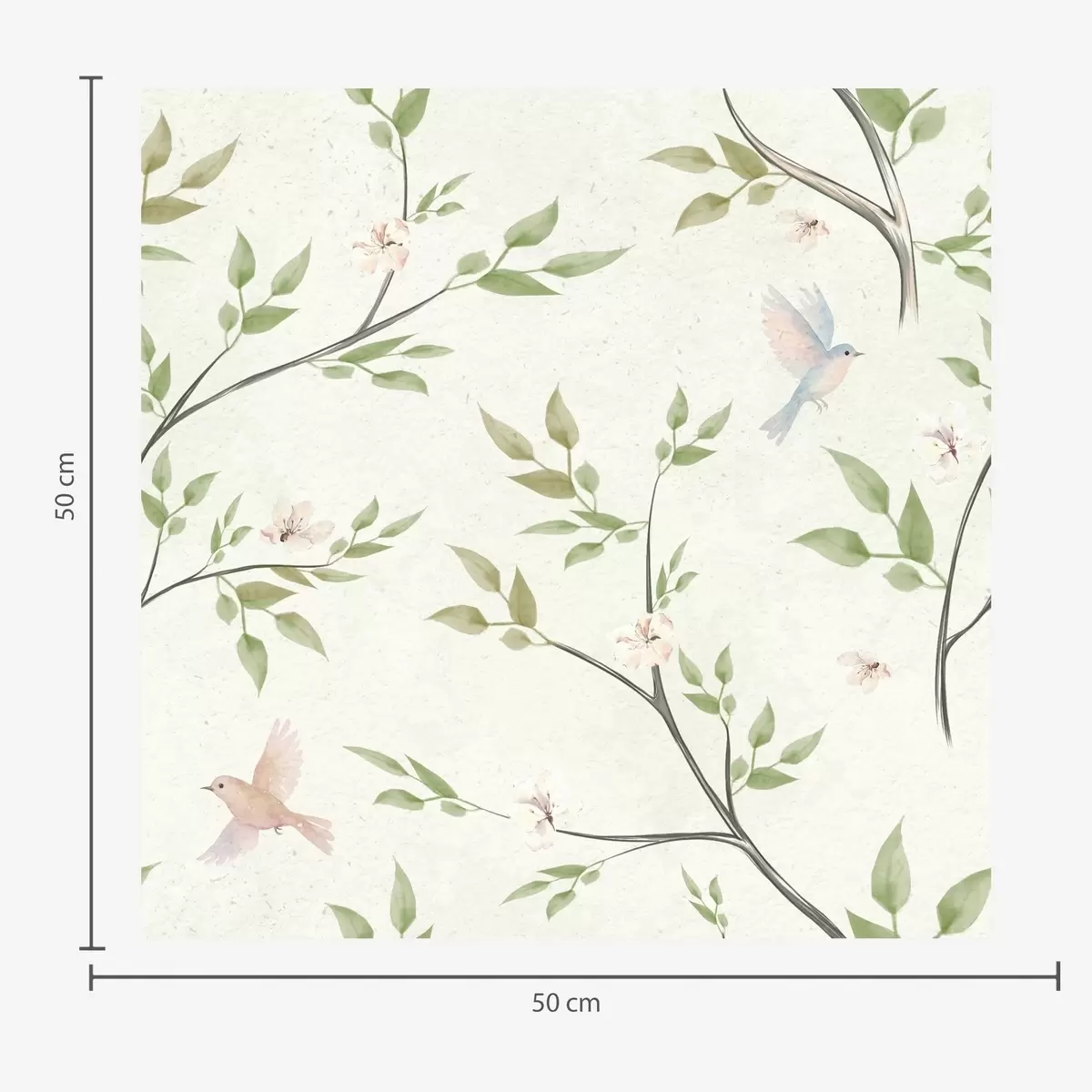 Tapet Ramuri pictate în acuarelă cu frunze și păsări pe un fundal deschis Nr. a00496
