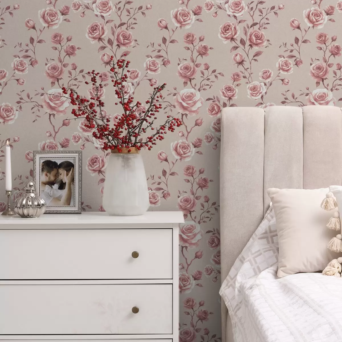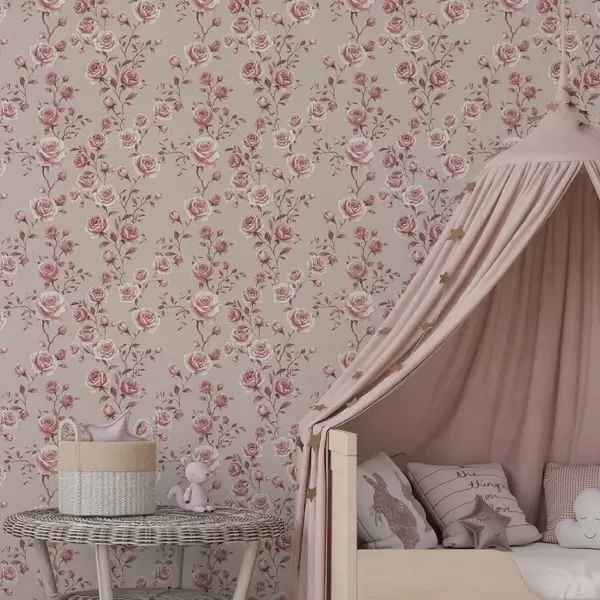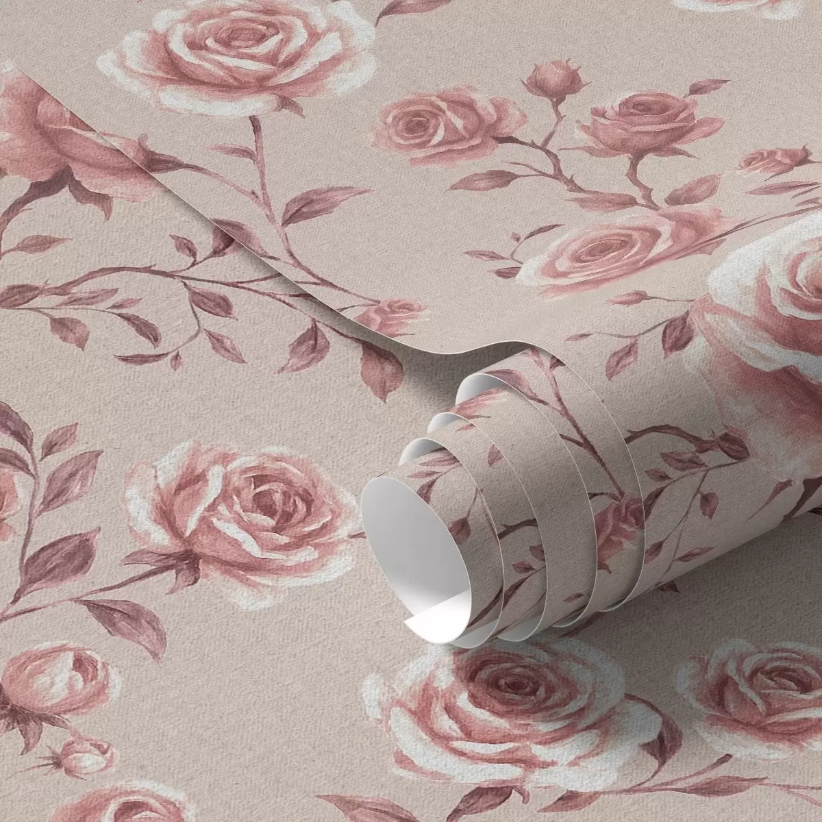 Tapet Trandafiri pudrați pe fond bej — model vintage Nr. a00497
