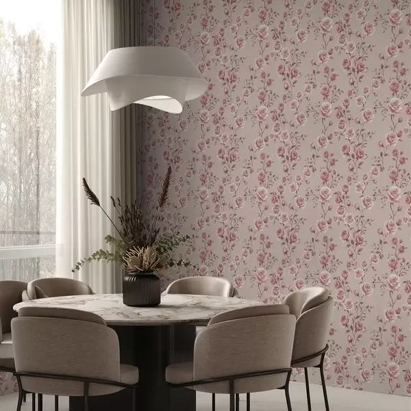 Tapet Trandafiri pudrați pe fond bej — model vintage Nr. a00497