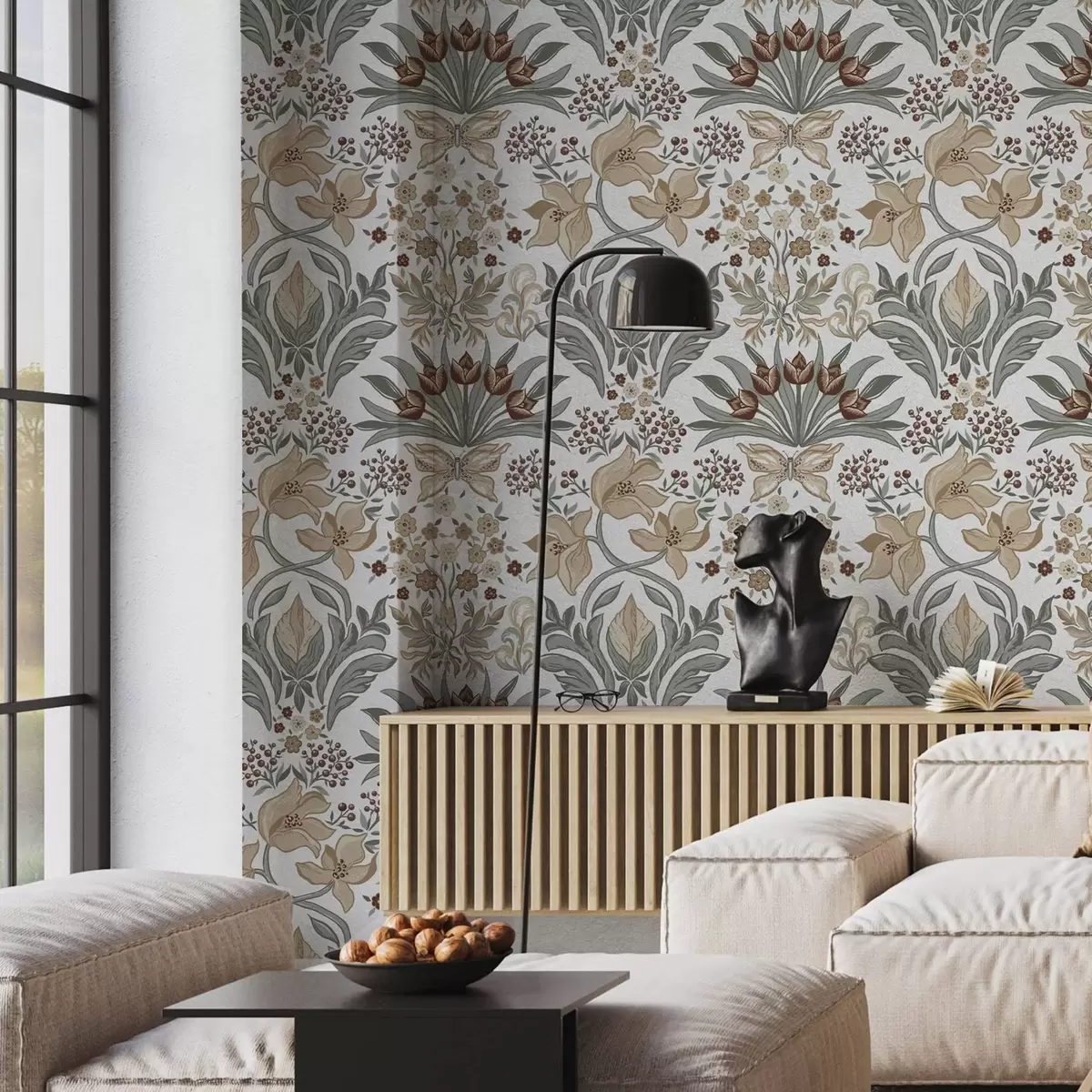 Tapet Crini decorativi și un fluture pe fond alb Nr. a00500v1