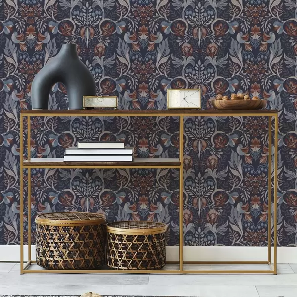 Tapet Flori și păsări populare pe un fundal albastru închis Nr. a00502