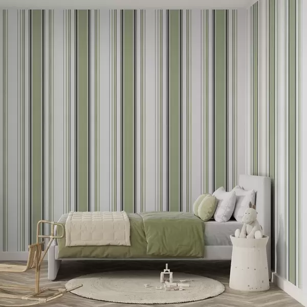 Tapet Fundal alb cu un amestec de dungi verzi și negre Nr. a00520