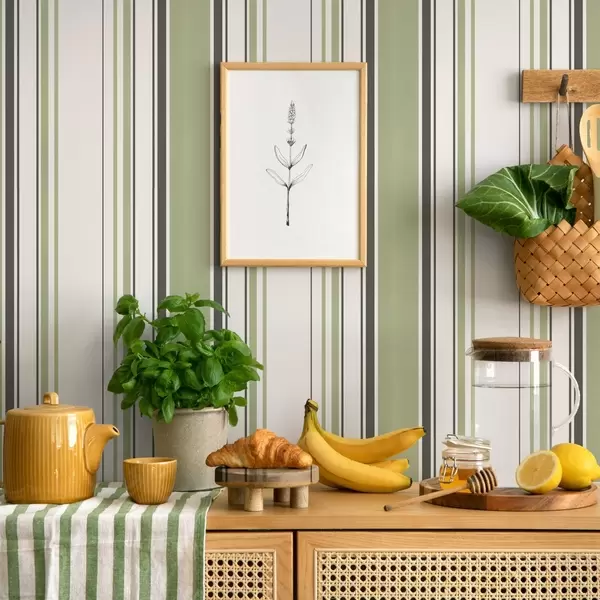 Tapet Fundal alb cu un amestec de dungi verzi și negre Nr. a00520