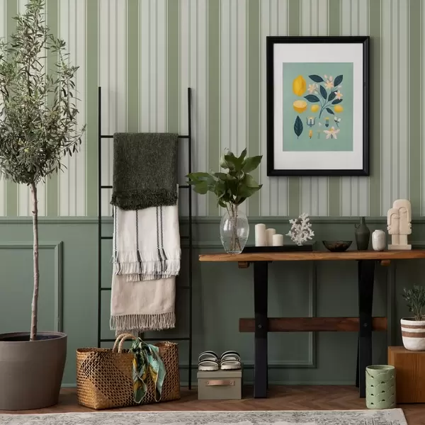 Tapet Fond crem cu dungi verticale chiar verzi Nr. a00560