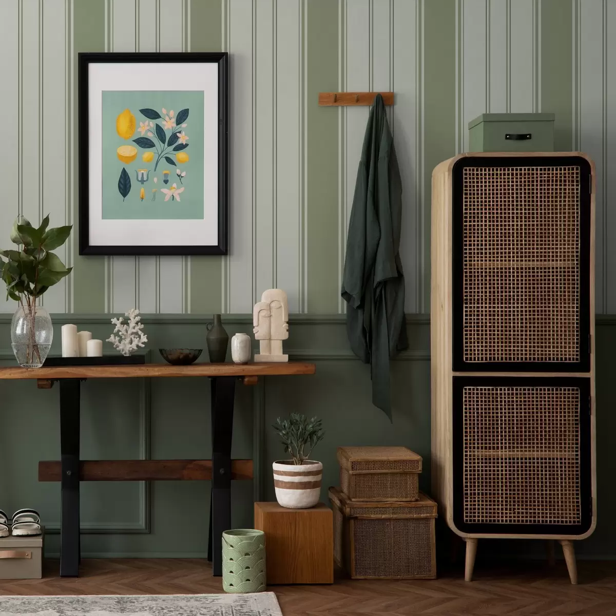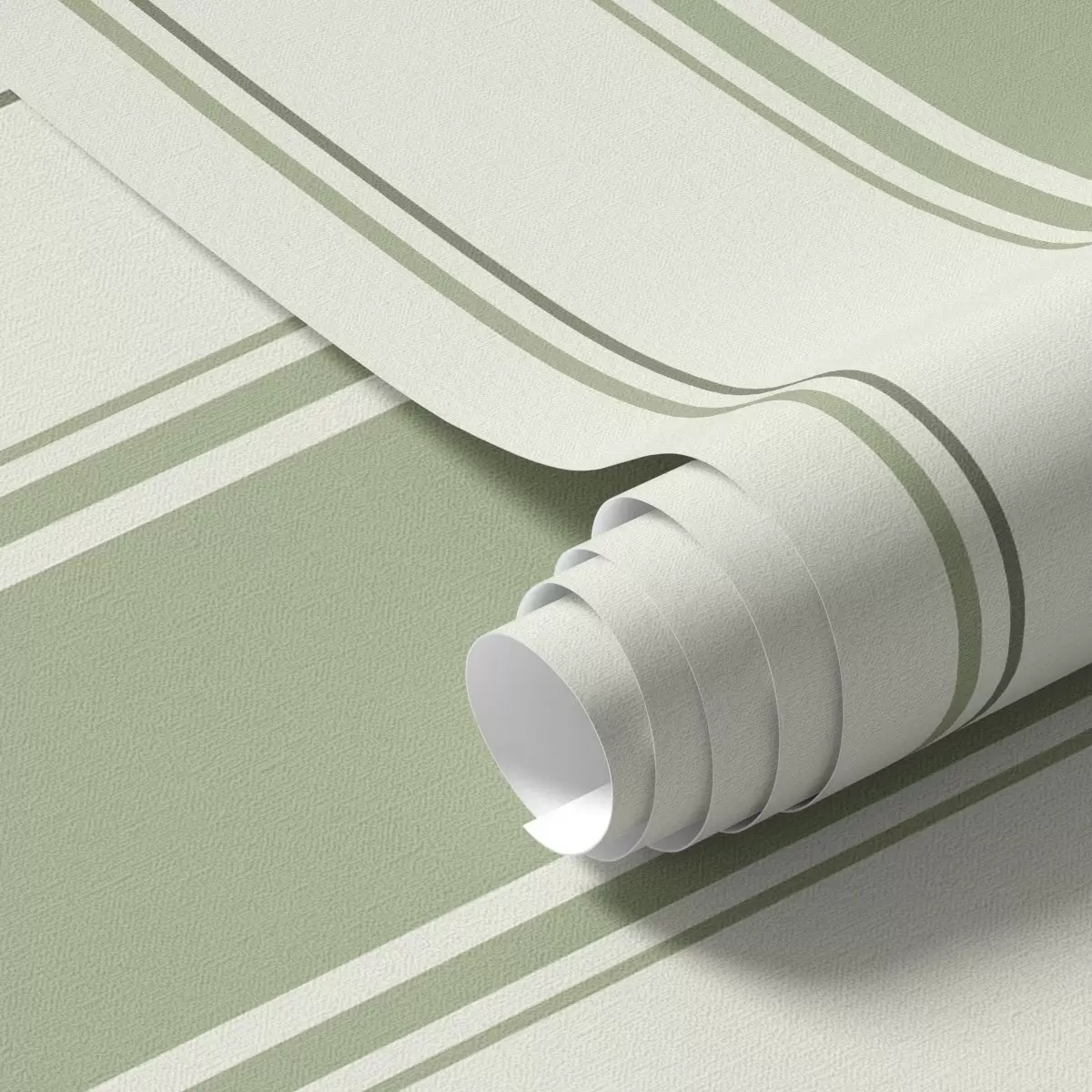 Tapet Fond crem cu dungi largi verde deschis Nr. a00561