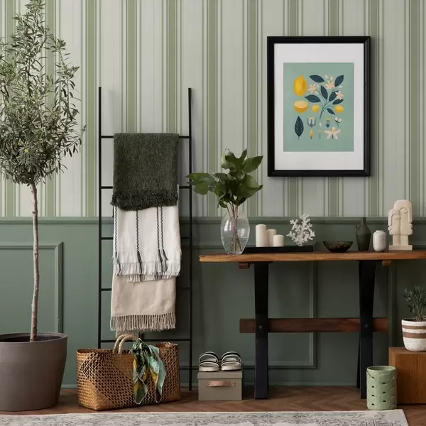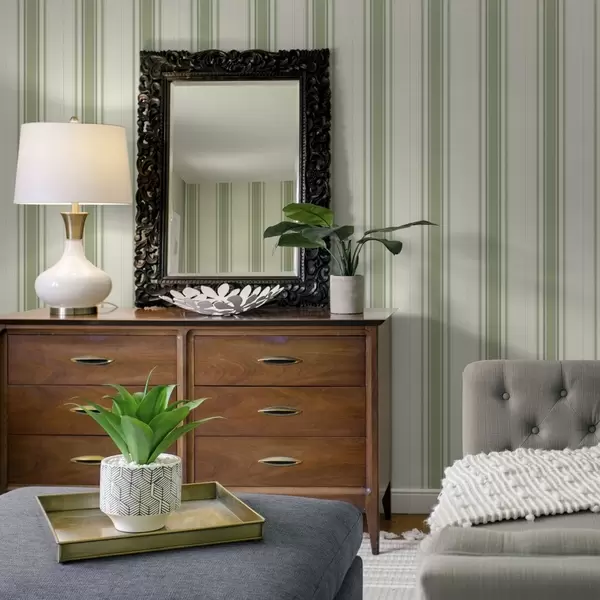 Tapet Fond deschis cu dungi de accent verde închis Nr. a00562