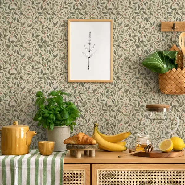 Tapet Ramuri de măslin cu fructe pe un fundal cald și luminos Nr. a00573