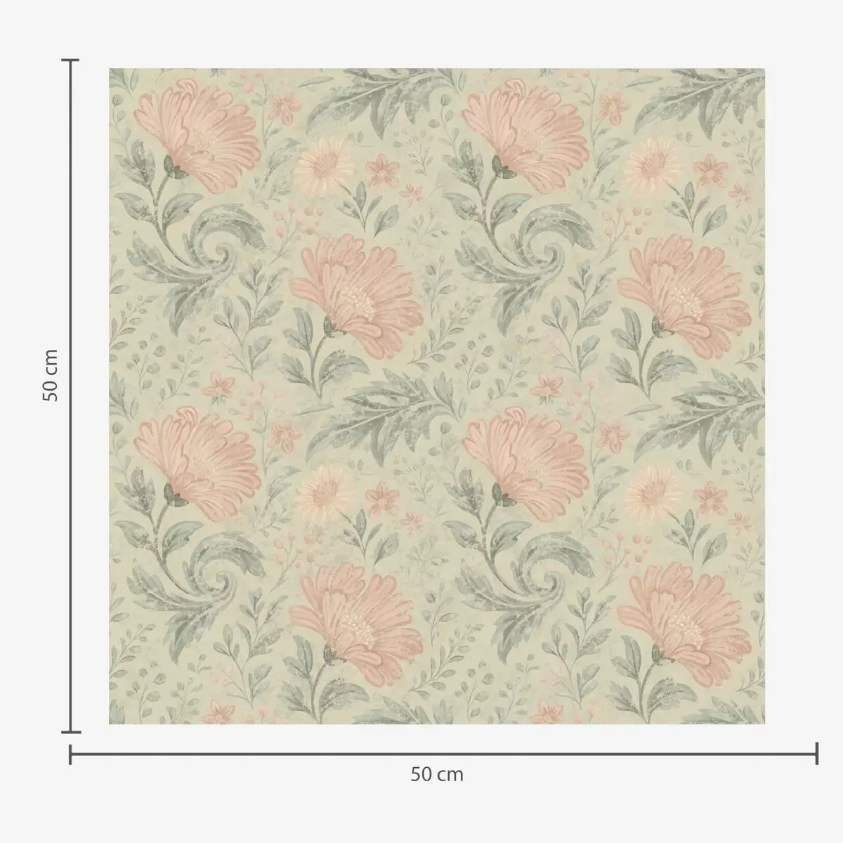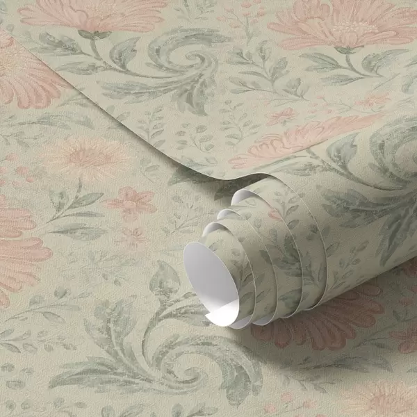 Wallpaper Flori mari de piersic vintage cu frunze de salvie a00580