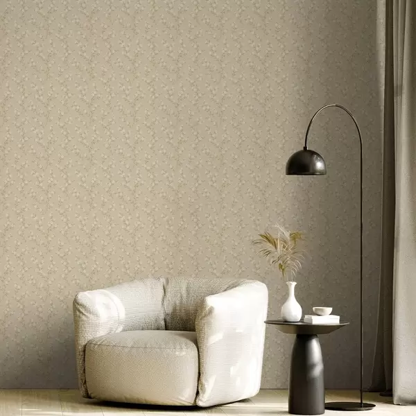 Tapet Ramuri mici albe pe un fundal de in bej Nr. a00584