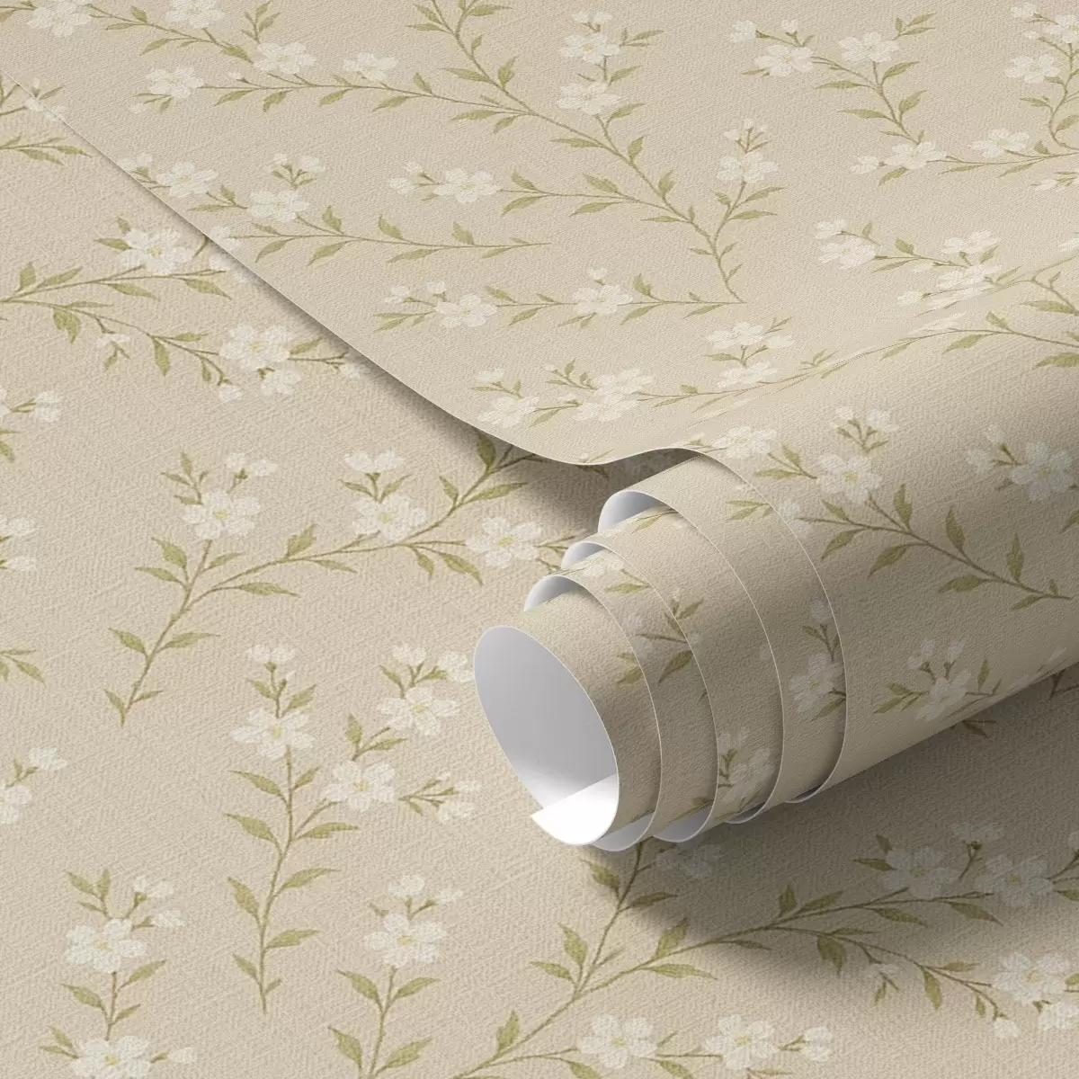 Tapet Ramuri mici albe pe un fundal de in bej Nr. a00584