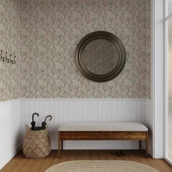 Tapet Lalele roz pal pe un fundal bej delicat Nr. a00589