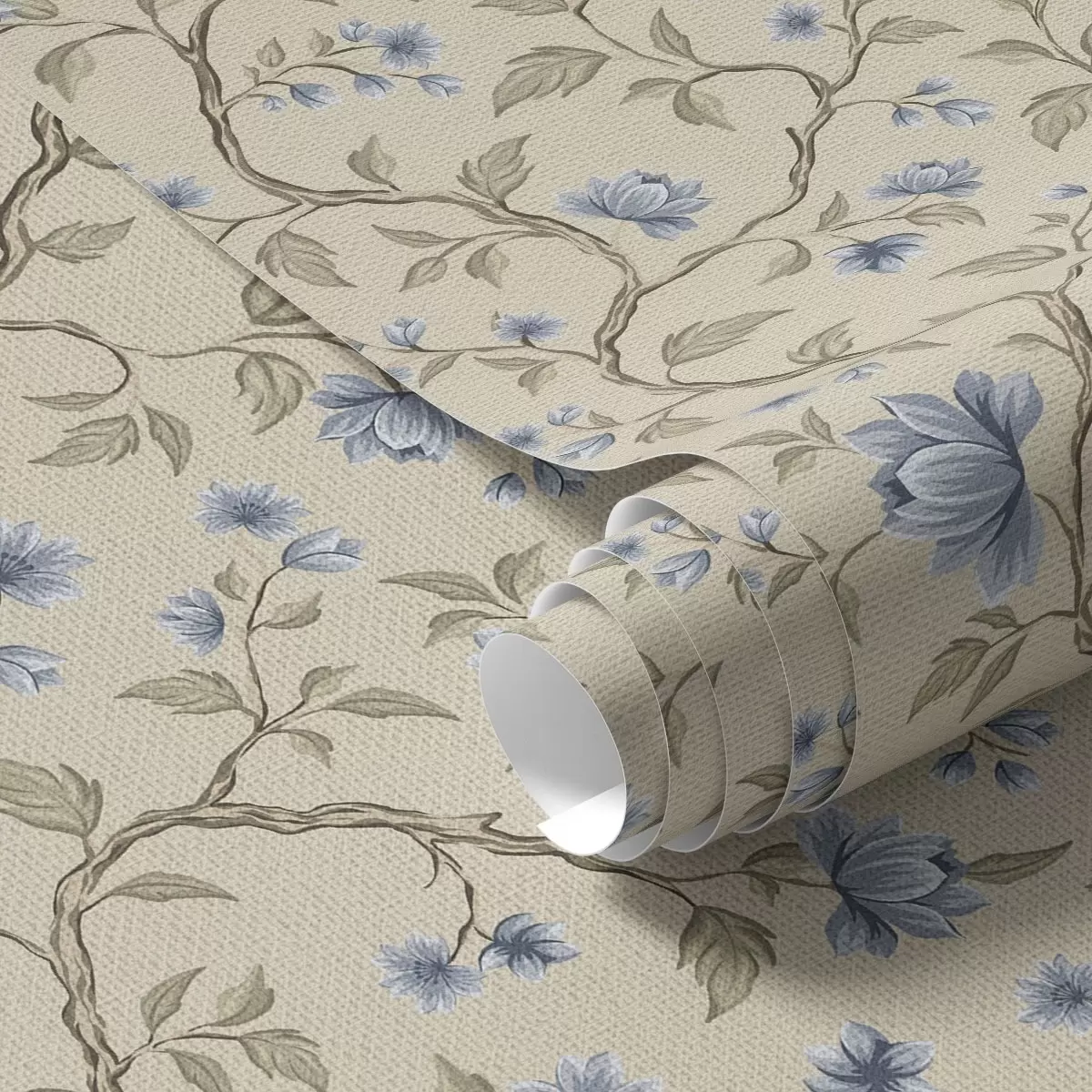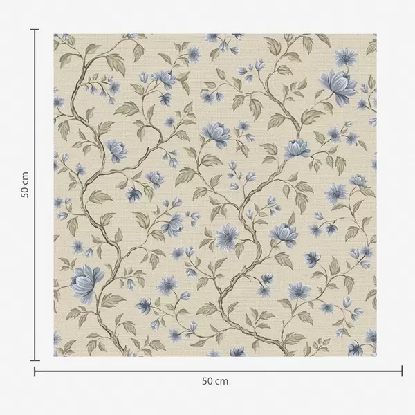 Tapet Ramuri cu flori albastre pe fond bej de in Nr. a00590