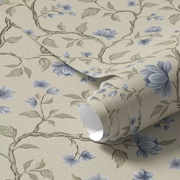Wallpaper Ramuri cu flori albastre pe fond bej de in a00590
