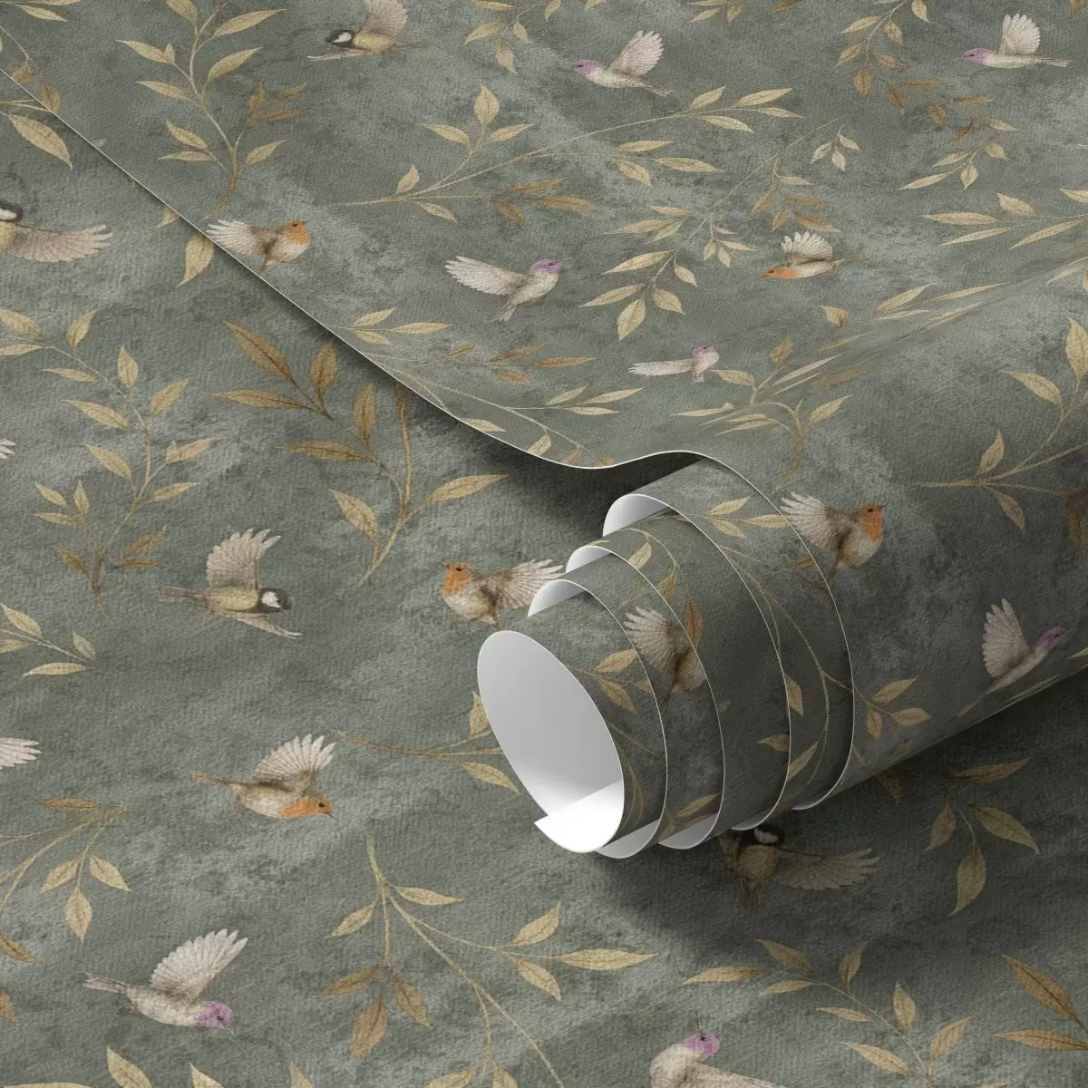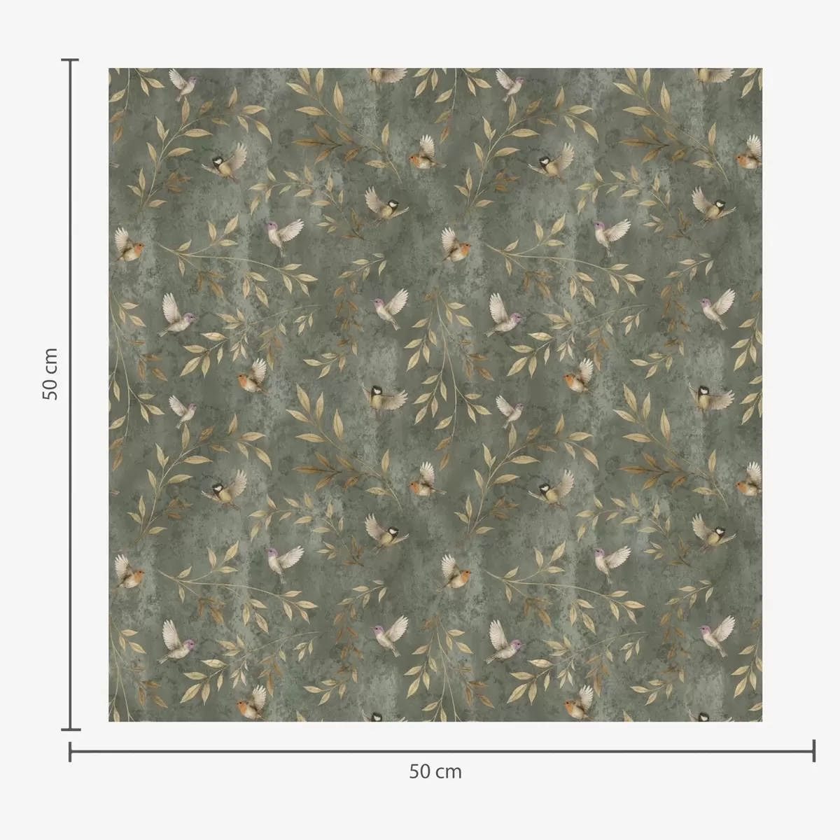 Wallpaper Păsări în frunziș portocaliu pe un fundal verde intens a00591
