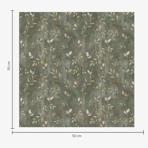 Tapet Păsări în frunziș portocaliu pe un fundal verde intens Nr. a00591
