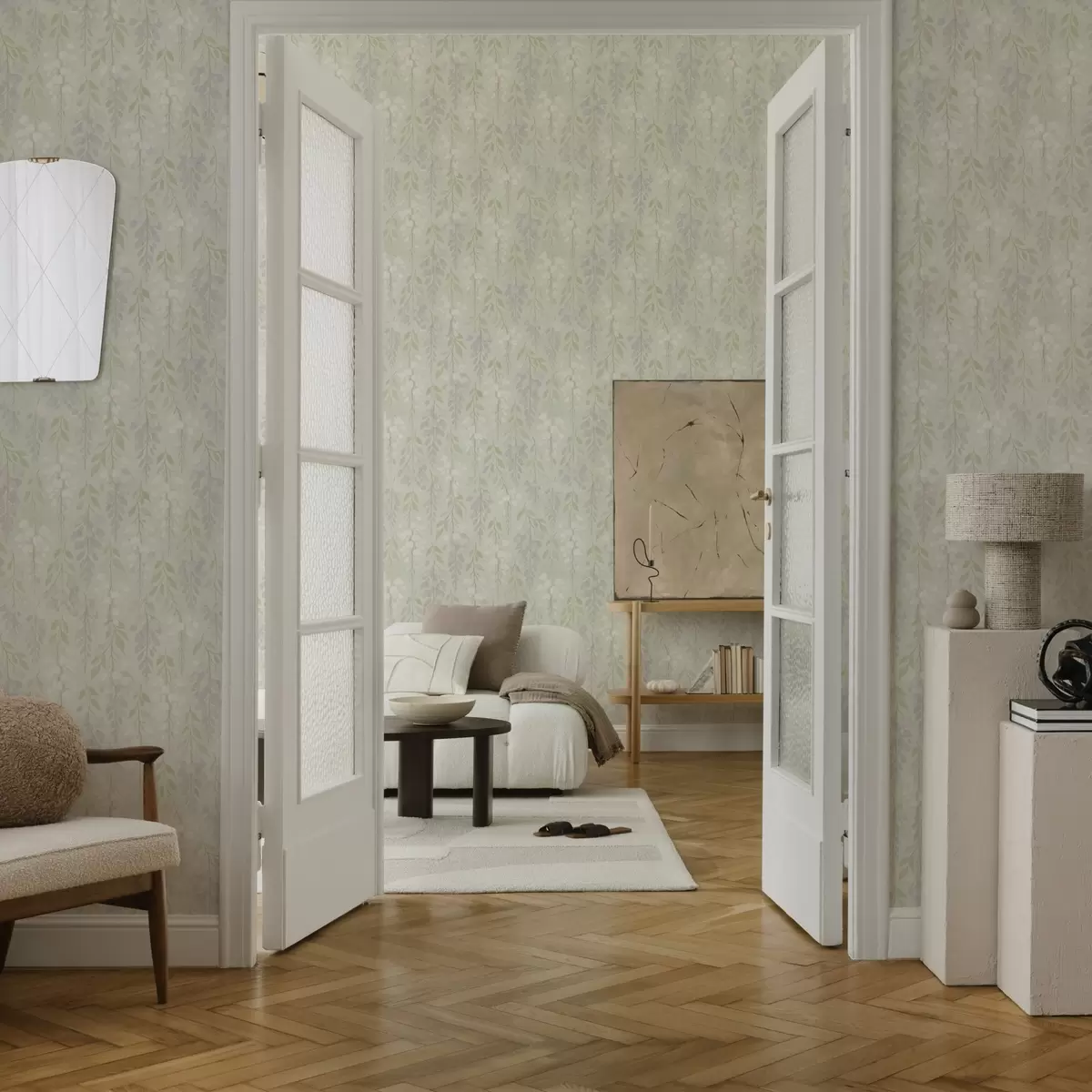 Tapet Glicină lavandă pe fundal verde mentă Nr. a00593