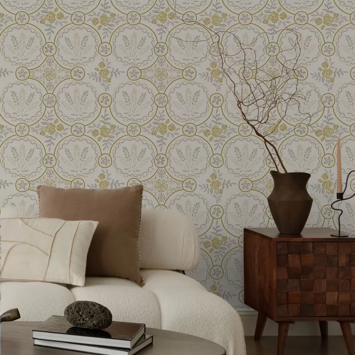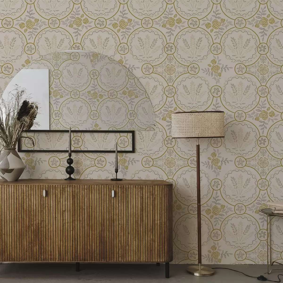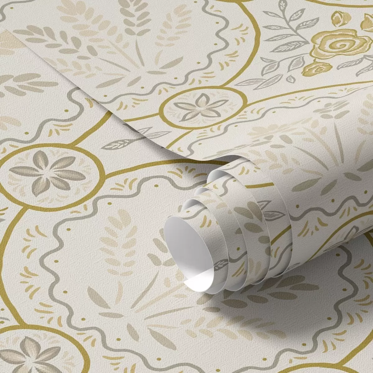 Tapet Ornament retro cu grâu și trandafiri Nr. a00595