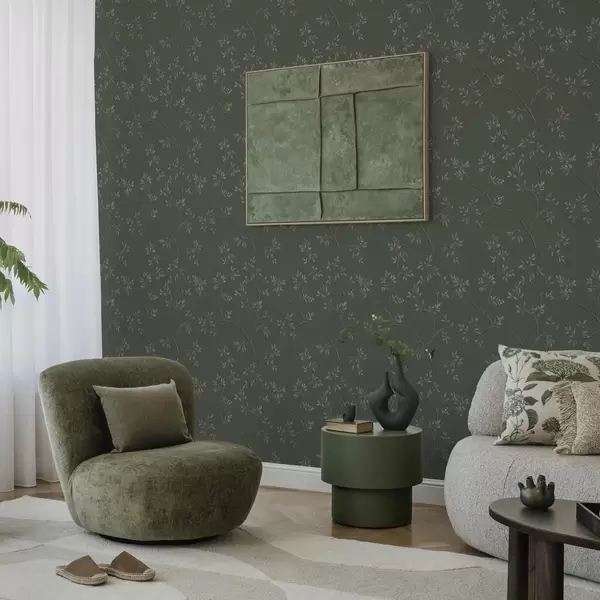 Tapet Ramuri delicate cu frunze pe un fundal verde închis Nr. a00597