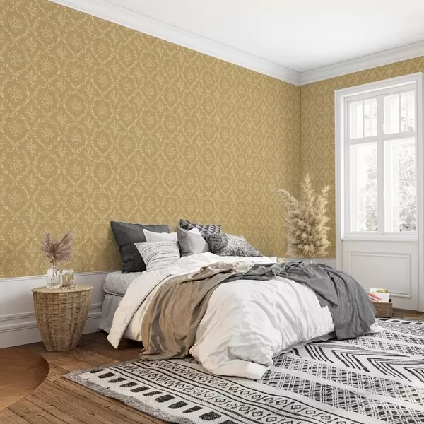 Tapet Coroane albe din ierburi și flori pe un fundal de muștar Nr. a00599