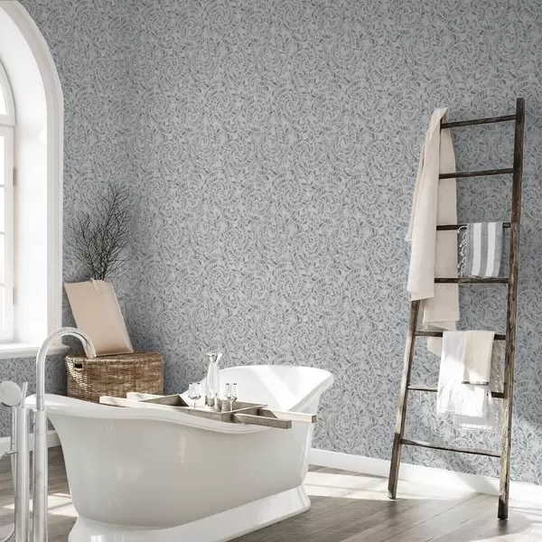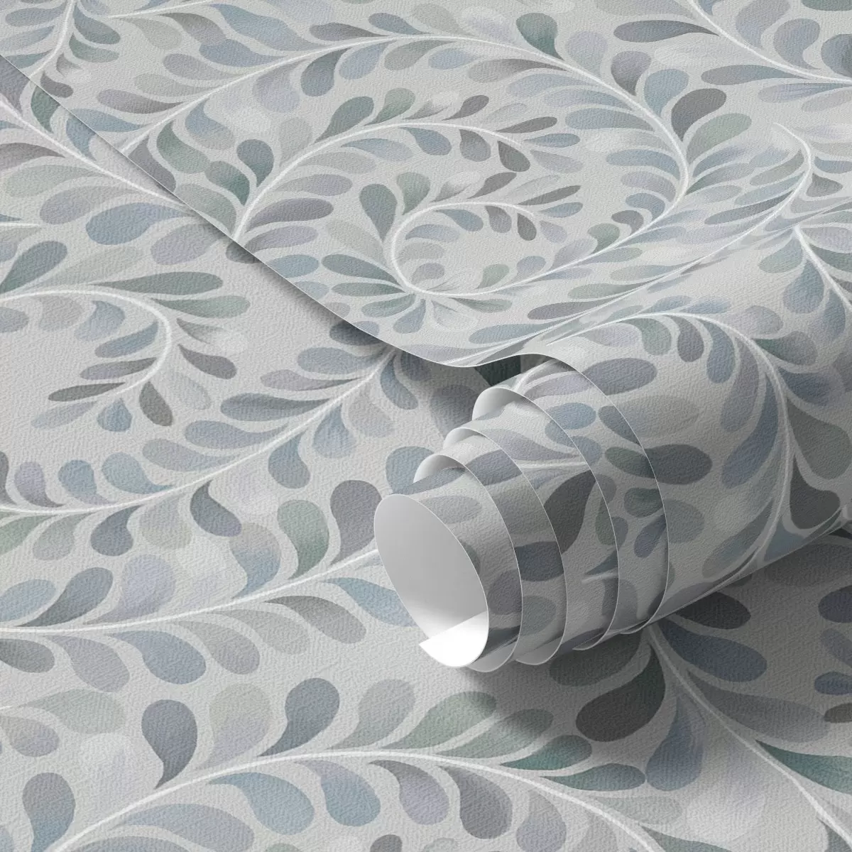 Tapet Frunze spiralate într-o paletă de culori albastru-gri-verde Nr. a00602