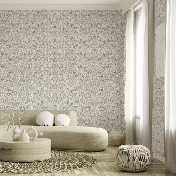Tapet Ornament ușor din viță de vie cu flori albe, simetric Nr. a00609